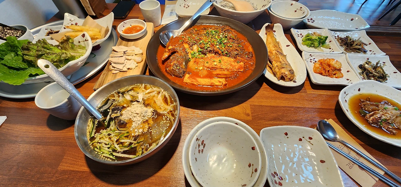 아침도 굶었기에 서로 밥을 두 그릇이나 먹으며 고기 네 종류(생선 3종류, 돼지 1종류)를 뜯어먹고, 발라 먹고, 찍어 먹고 쌈에 싸 먹고, 게장은 쪽쪽 빨아먹고, 조림 국물에 비벼 먹고, 우거지는 건져 먹고, 조림 무는 잘라먹고. 묵사발에 부어 먹고, 먹고 먹어 배 터질 지경으로 먹어도 젓가락을 놓지 못한다.