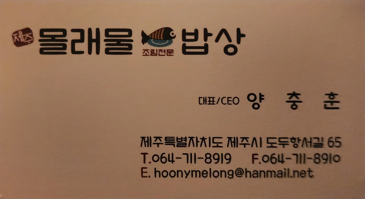 택시 탄 지 5분도 안 돼 도착했다. 도두항서길에 있는 몰래물 밥상이다. 제주도 정식을 파는데 활우럭조림과 은갈치조림이 대표 메뉴다. 매표소 직원은 가족들이 이 근처에 오면 무조건 들러 먹는 인생맛집이라며 활우럭조림을 시킨다. 상차림을 보니 가히 진수성찬이고 맛을 보니 천하일미(!)로다. 장인의 손길이 느껴진다. 내가 제주도 와서 먹었던 수많은 음식 중 무조건 첫손가락에 꼽힐 것이다. (나중에 제주도에 들릴 일이 있다면 꼭 한 번 들러서 식사하라고, 후회 없을 거라고, 추천한 사람 복 받으라고 말할 것이라고 장담한다.)