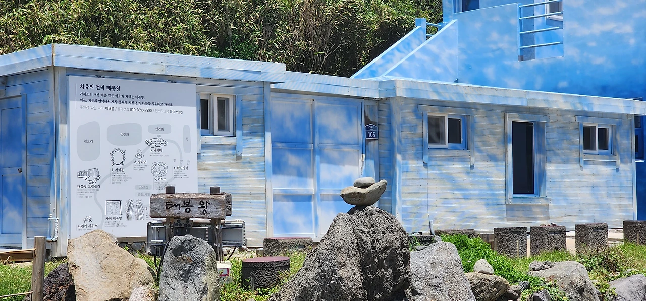 자, 계속 가자. 처음 보이는 장소는 이태봉 씨가 조성한 자연 치유공간 태봉왓이다. 시간이 되면 돌겠지만, 우선 해안가를 따라간다. 멀리 왼쪽 언덕에 아티스트 인 레지던스 건물이 보인다. 조금만 더 가면 헬리콥터가 착륙할 수 있다는 곳이다. 그리고 바로 그곳이 일출을 구경할 수 있는 핫스폿이다.