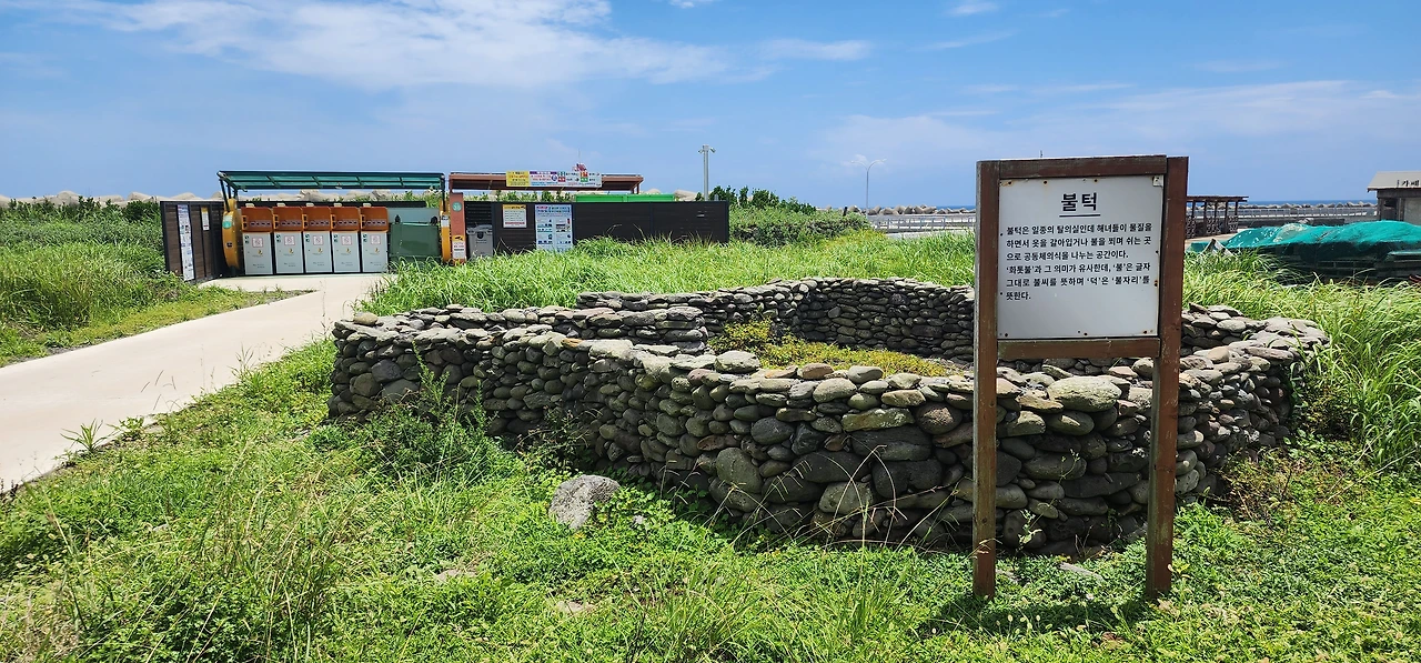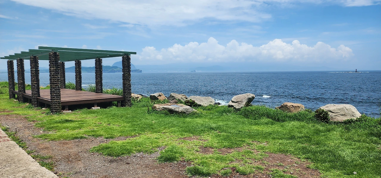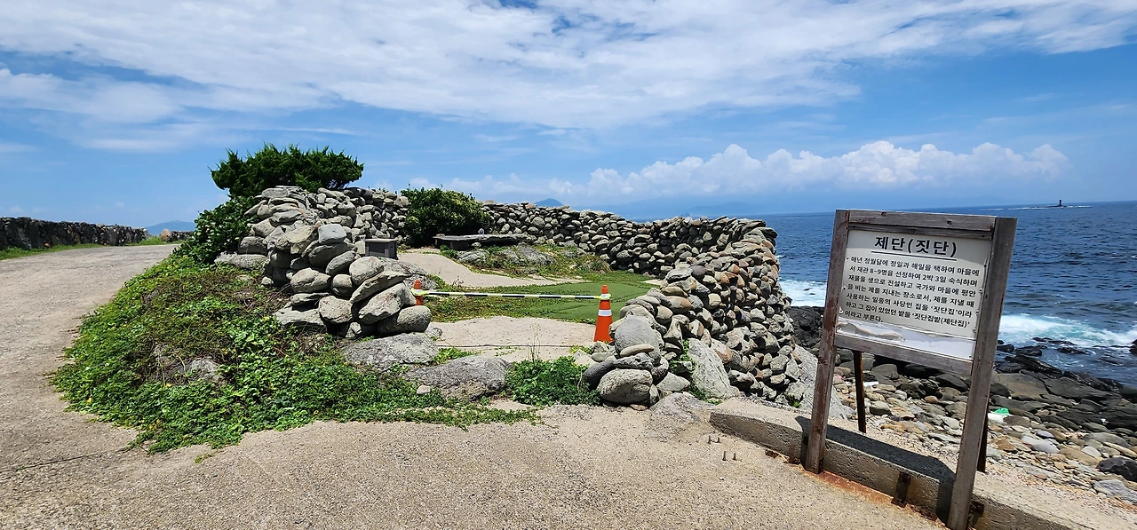 자, 이제 거의 다 왔다. 자전거를 타고 왔다면 언덕은 내려서 밀고 올라가자. 작은 언덕 끝에 제단(짓단)과 드라마 <우리들의 부르스> 촬영지와 내가 최애하는 쉼터가 있다. 나는 이곳에 앉아 바다를 멍하니 바라보며 상념에 잠기곤 한다.