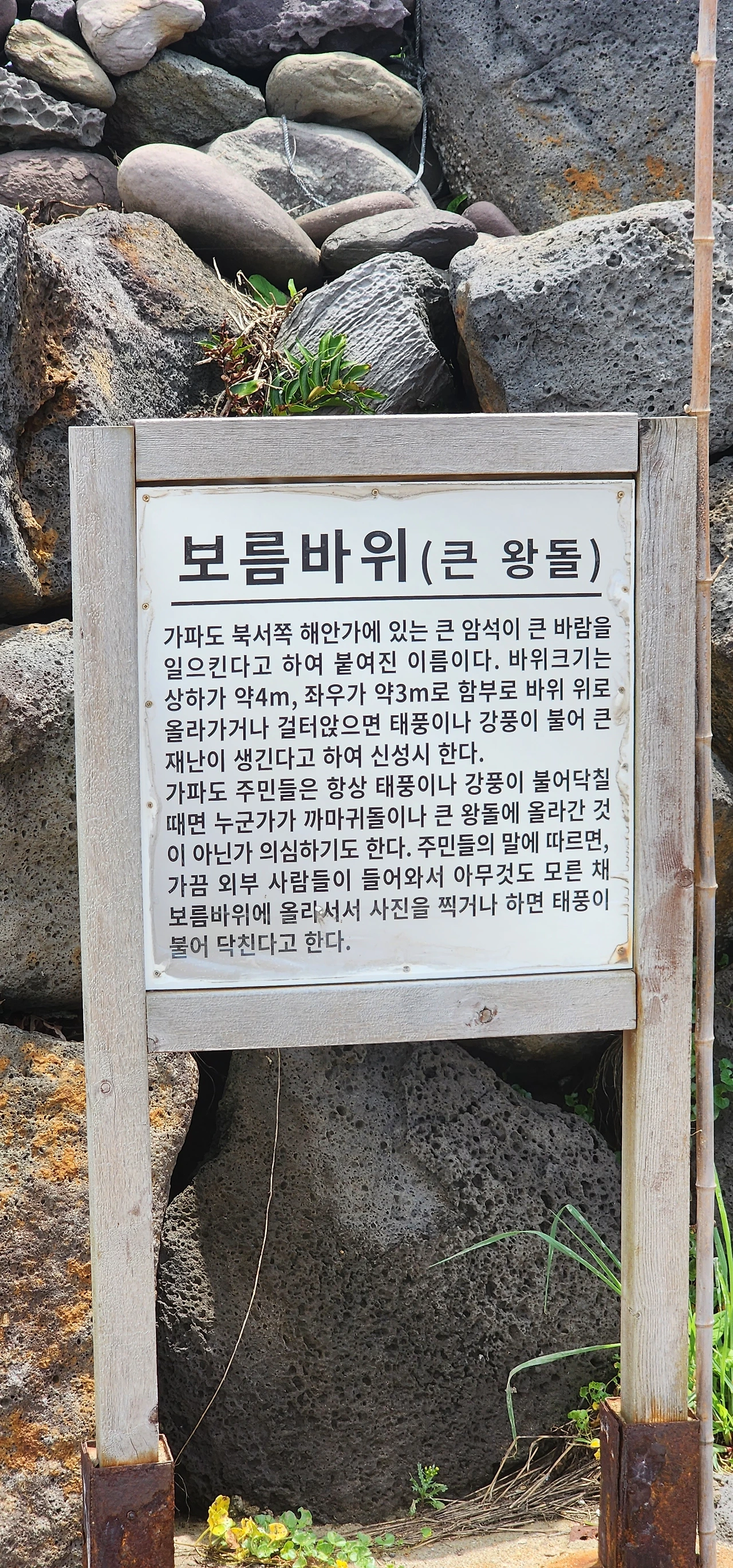 제일 먼저 눈에 들어오는 것은 보름바위(큰 왕돌)다. 기념사진 찍겠다고 여기 올라가면 안 된다. 안 좋은 일(태풍이나 강풍 따위로 생기는 재난)이 생기다는 속설이 있다.