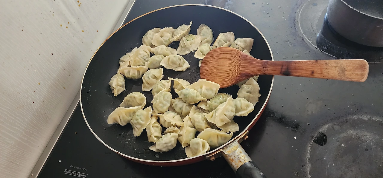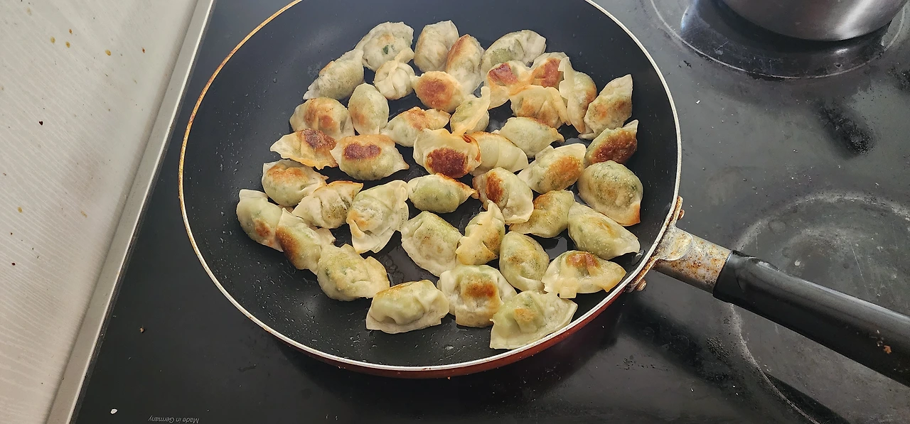 오늘도 냉장고 파먹기를 계속한다. 가장 많이 남은 부식이 꼬마만두(물만두용)다. 물만두로 만들지 않고 군만두로 만들기로 한다. 한 100개쯤 튀겨서 매표소 직원 가족(부부와 초등학교에 다니는 아들 둘)에게 반을 나눠주고, 나머지 반으로 직원과 함께 간단한 저녁식사를 하기로 한다.