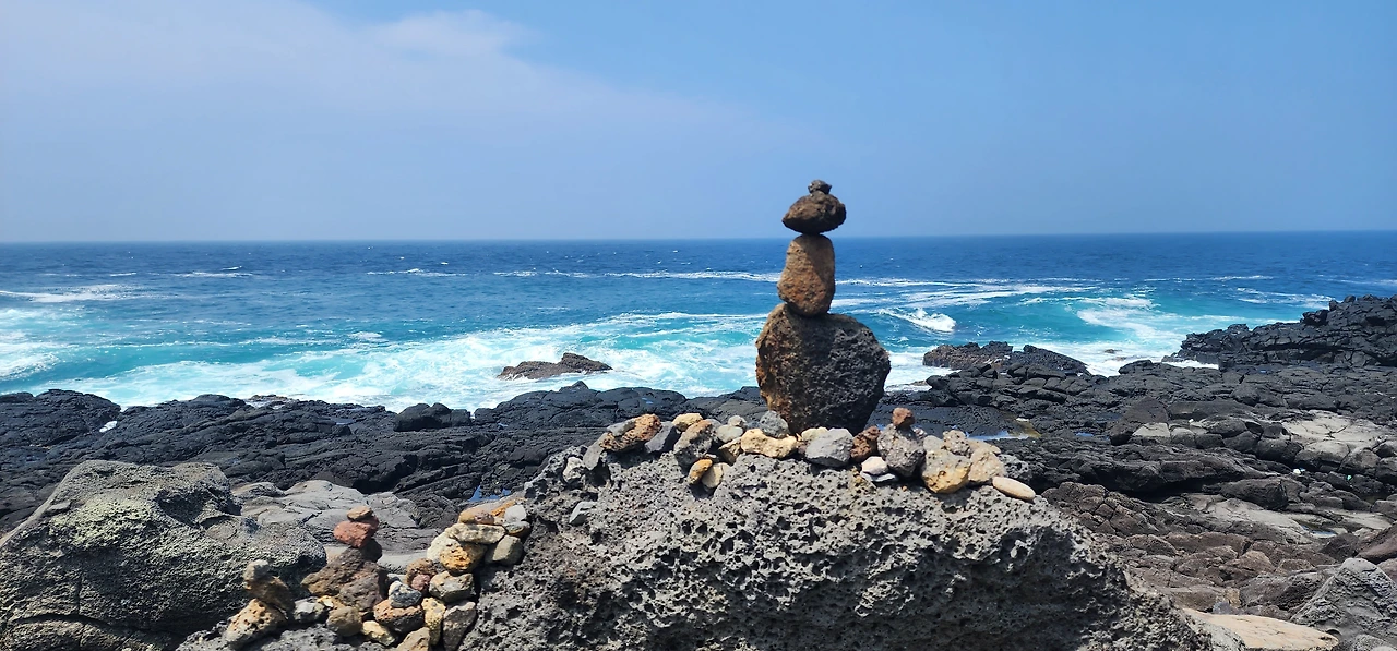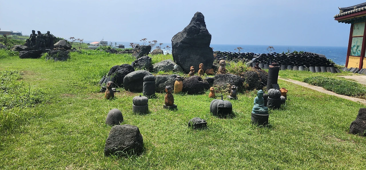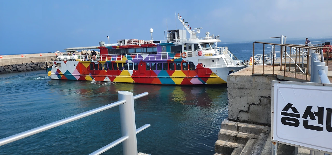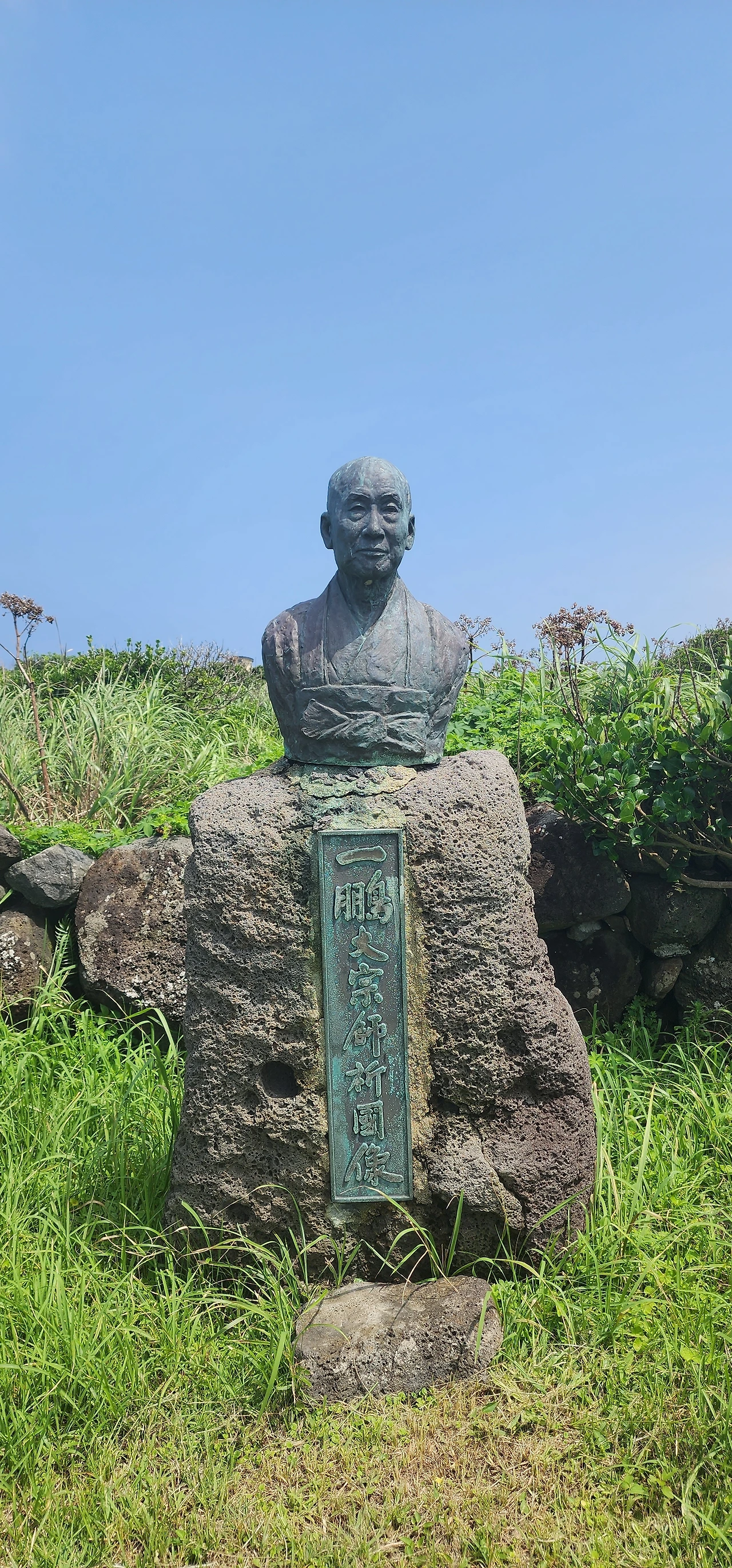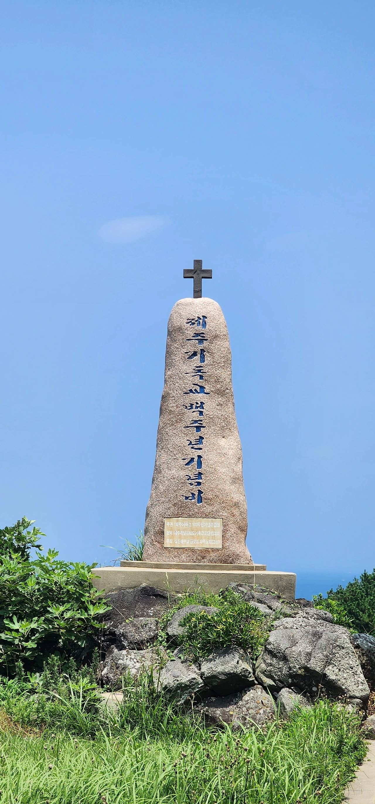 시계를 보니 30분 정도 남았다, 못 가본 해안가를 서둘러 가볼까 생각하다가 그냥 그늘에서 쉬기로 한다. 폭염에 습기로 온몸이 끈적끈적하다. 배를 타기 전 선착장 앞에 있는 통일기원비를 발견하고 사진에 남겨둔다. 요즘처럼 통일이 멀게만 느껴지는 시국에 소중한 기원비다. 저 멀리 다시 운진항으로 돌아갈 배가 보인다. 마라도를 이제는 떠난다. 안녕 마라도, 최남단의 막내섬이여.