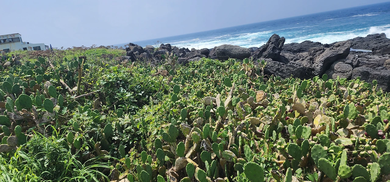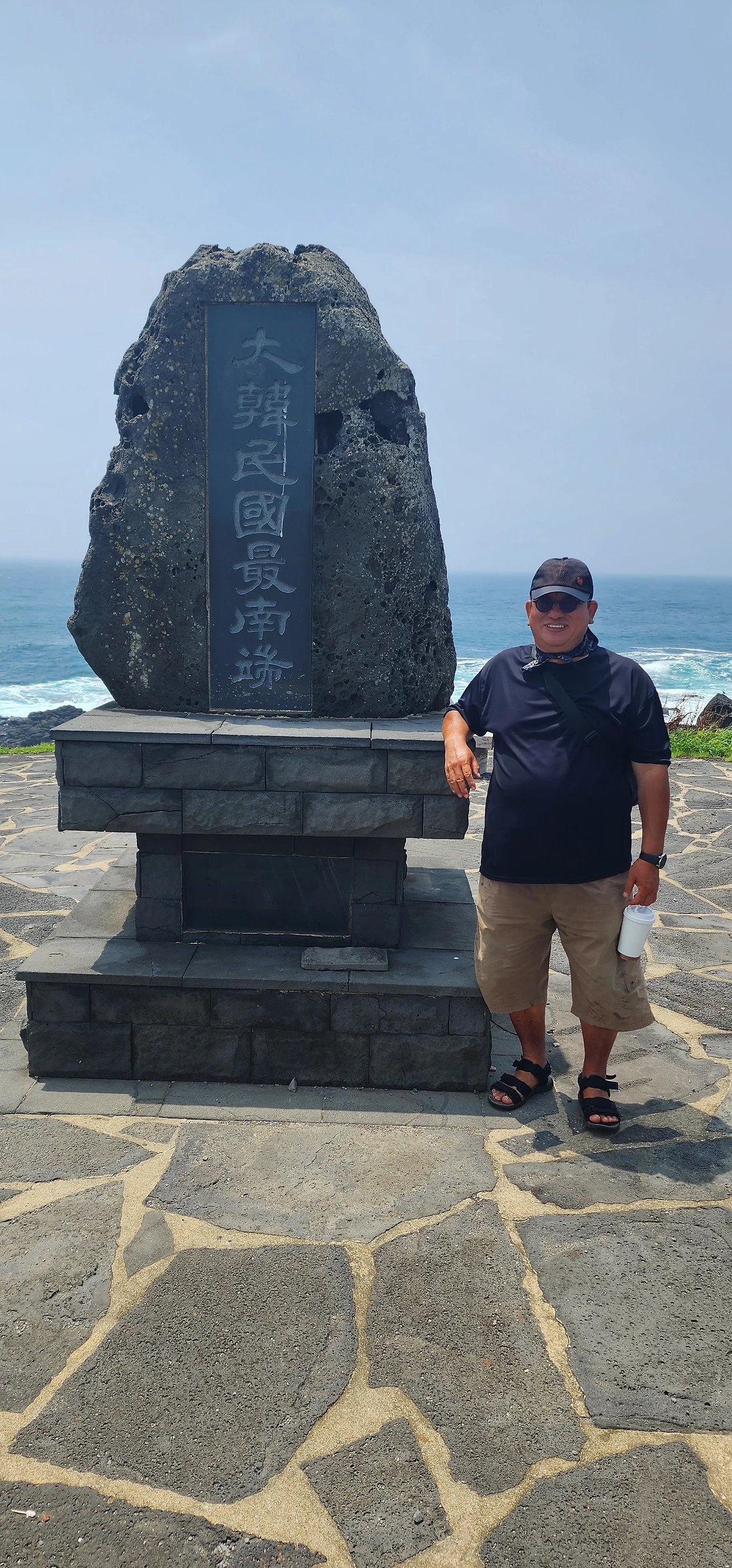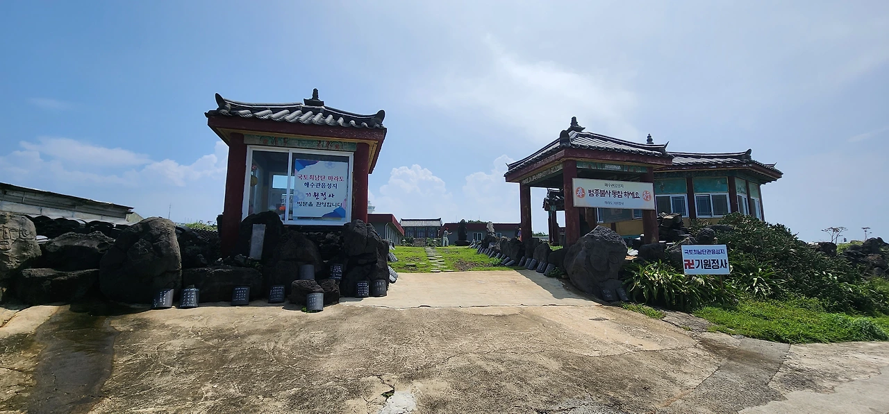 백년초 자생지를 지나 공공화장실에 도착하여 일을 본다. (마라도도 가파도처럼 공공화장실이 두 곳이다. 지리덕 선착장과 국토최남단 기념비를 가기 전에. 규모는 비슷하다.) 마라도 해양경찰서 옆에는 여행객 쉼터가 있고 바로 앞에 국토최남단 기념비가 있다. 내가 들어간 여행사진을 찍지 않는데, 여기에서는 진짜 기념으로 옆 여행객에게 사진을 찍어 달라고 부탁했다.