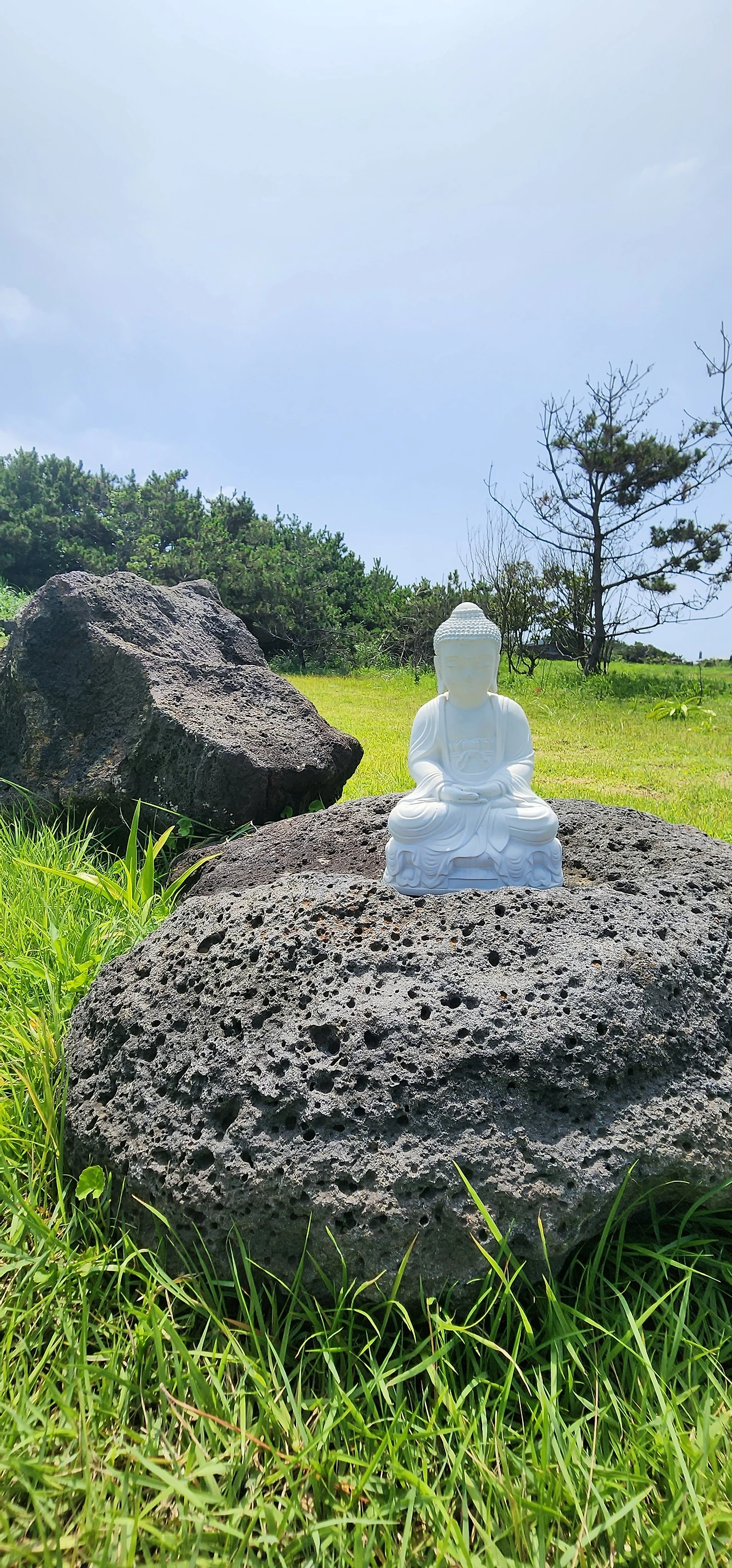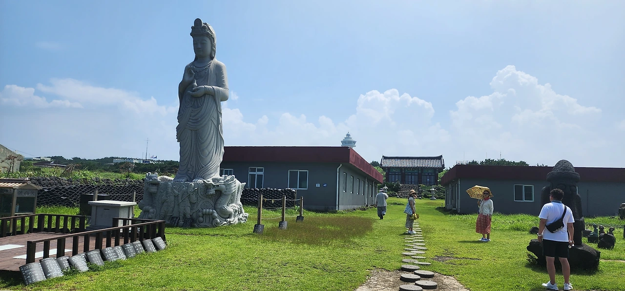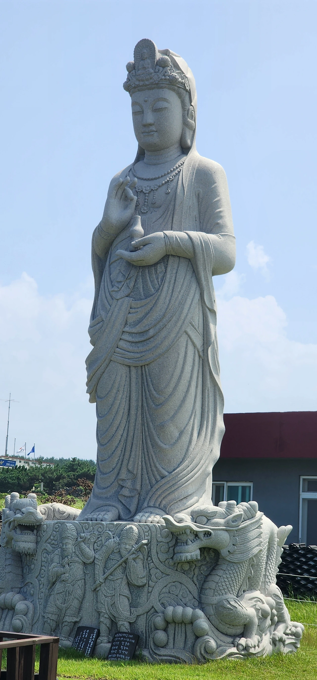 조금 더 걸으니 기원정사라는 절이다.(참고로 마라도에는 절과 성당과 교회가 다 있다. 최남단이라는 상징적인 지리적 조건이 종교시설에도 영향을 미치는 것 같다.) 작고 아담한 절이다. 절 입구에 해수관음상이 있다. (항구도시에 위치한 절에는 해수관음상이 있는 듯. 바닷사람의 안녕을 기원하는 보살이다.) 절을 둘러보고 조용히 사진을 찍다가 스님을 만났다. 나는 합장하고 인사한다. 스님이 다가온다. (그러려고 인사드린 건 아닌데.^^)