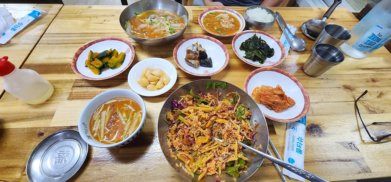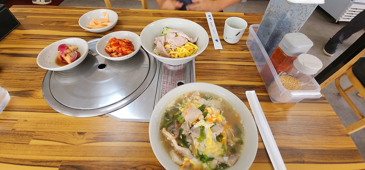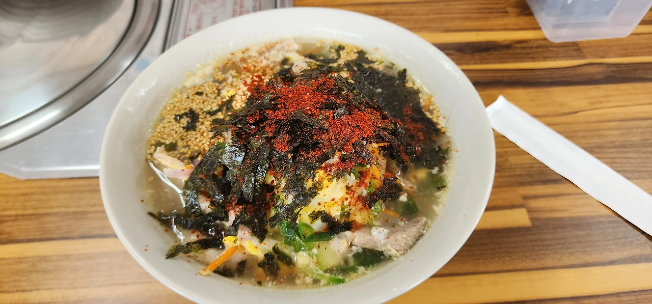 직원이 점심 때 사준 멍게비빔밥과 돼지국수. 돼지국수는 일품이다.3.