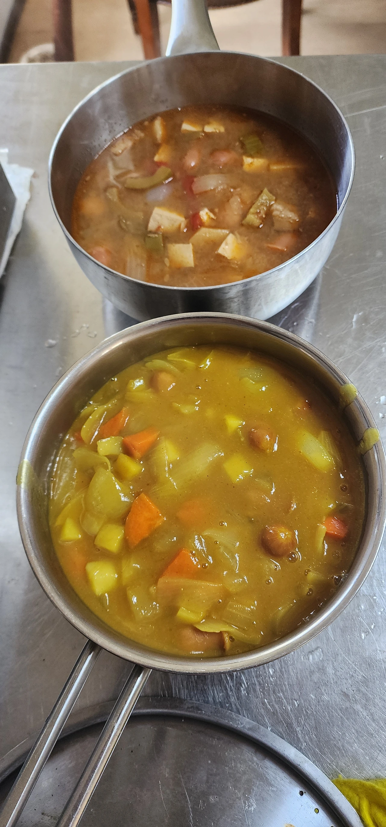오늘은 된장찌개와 카레에 아이들이 좋아하는 소시지를 넣었다.