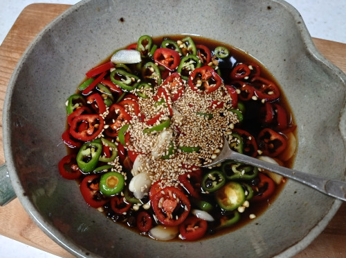 -통후추와 말린 생강 두 조각 띄우고 통깨 팍팍 넣으면 끝.