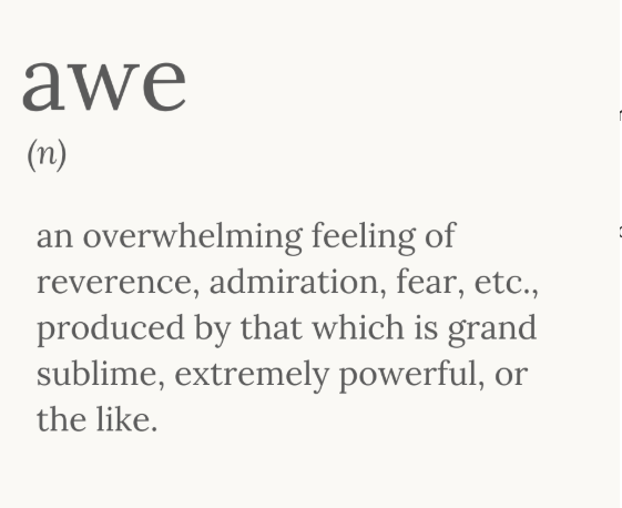 경외심의 영어단어인 AWE의 사전적 의미는 경건한 존경심에 두려움과 경이로움이 뒤섞인 느낌입니다.
