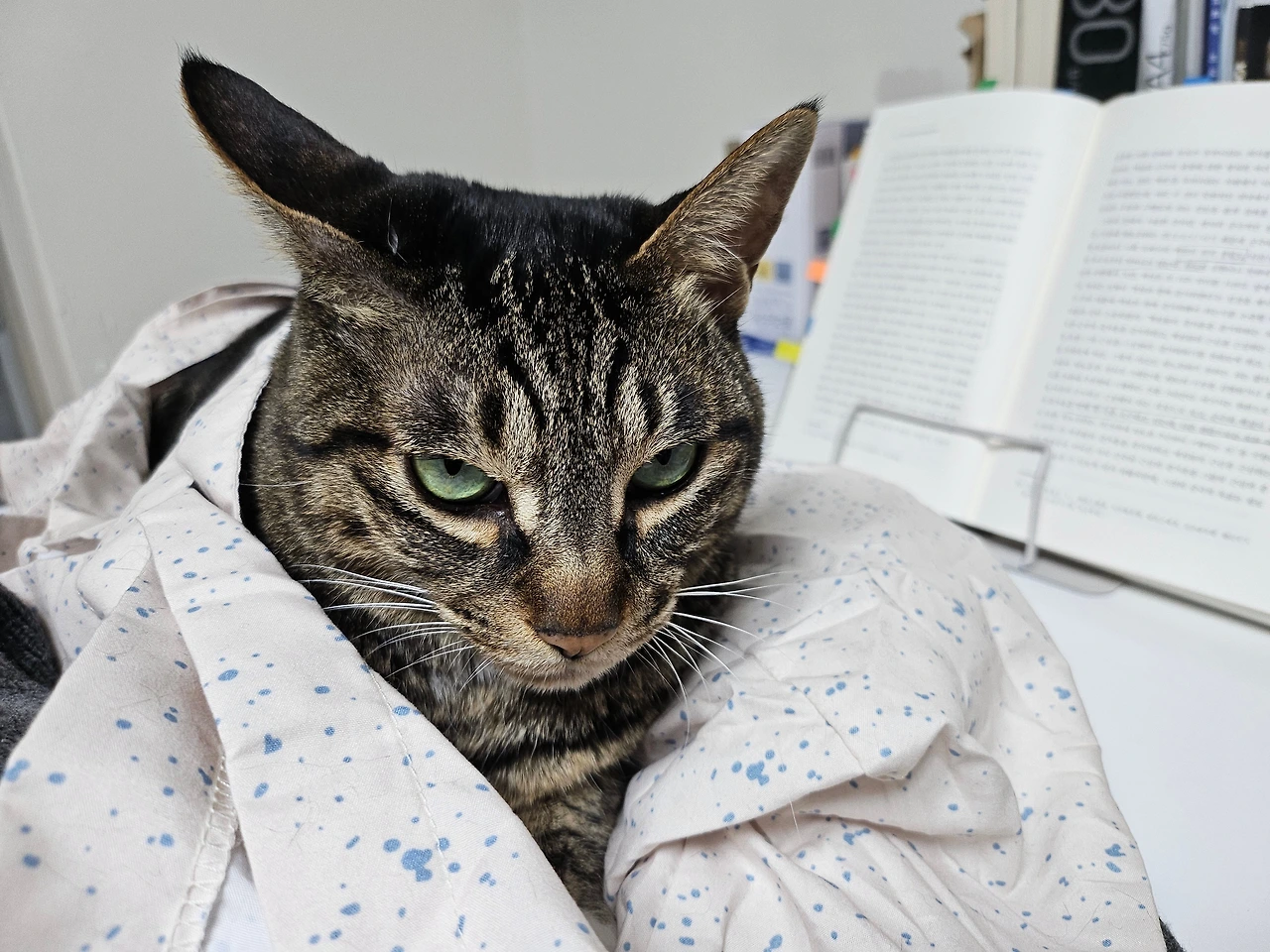 컴퓨터 앞에 앉아 열심히 일하는 나에게 고양이는 훌륭한 동료다.