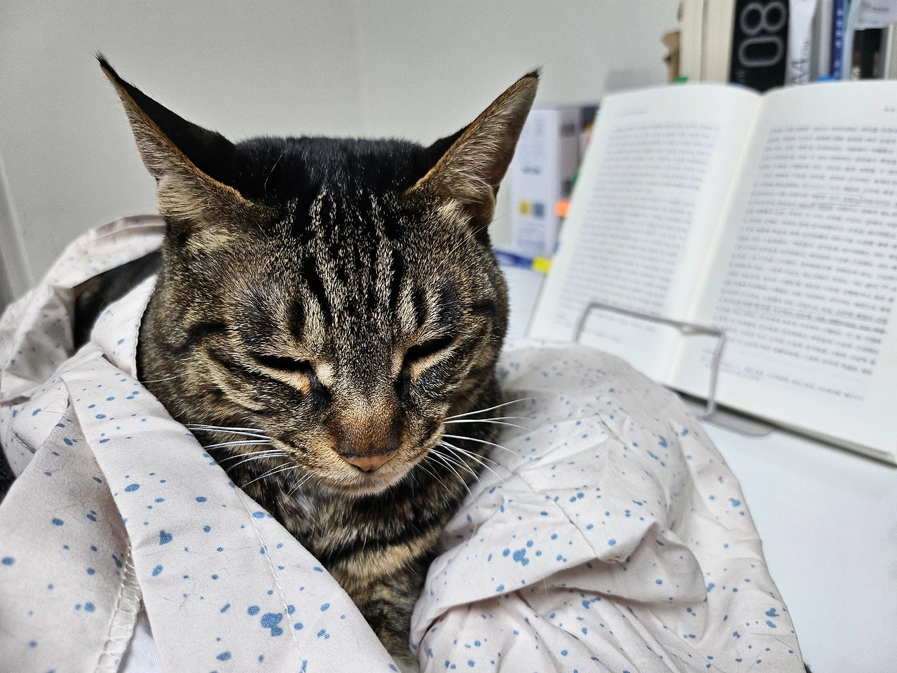 고양이는 내 손길에 기분이 좋은지 그릉그릉 소리를 내며 더욱 깊은 잠에 빠진다.