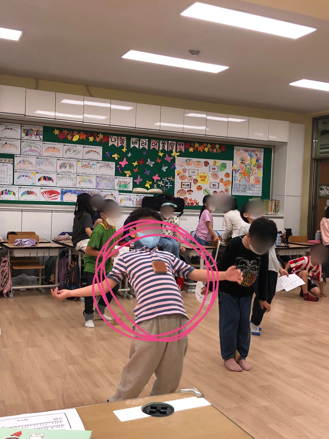 강강술래, 풍물놀이, 운동회 응원댄스, 비석 치기. 최근 1학년 우리 반 어린이들과 함께 한 고강도 신체 활동이다. 요즘은 홈트가 대세라던가? 클래스룸 트레이닝이면 하루치 칼로리를 아낌없이 불태울 수 있다. 일과 운동을 동시에! 다 같이 흔들어!