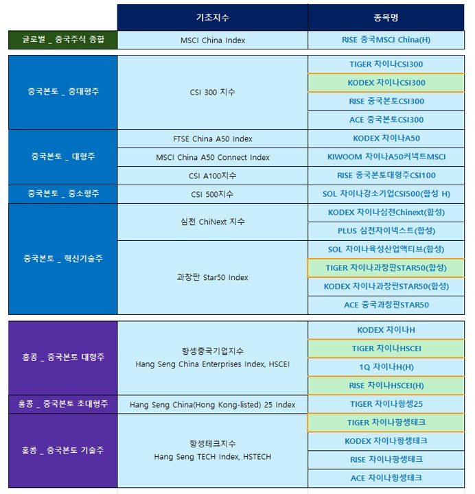 국내 출시 ETF 중에는 CSI300지수를 기초자산으로 설정하고 있는 상품이 가장 많다.