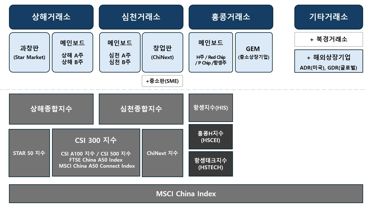 투자를 시작하기 전에 중국의 다양한 증권거래소와 주식시장에 대한 이해, 그리고 기초지수들의 특성에 대한 파악은 기본 중의 기본이다. 개별주식에 대한 직접투자로 접근하든 ETF를 통한 간접투자로 접근하든 모두 말이다.