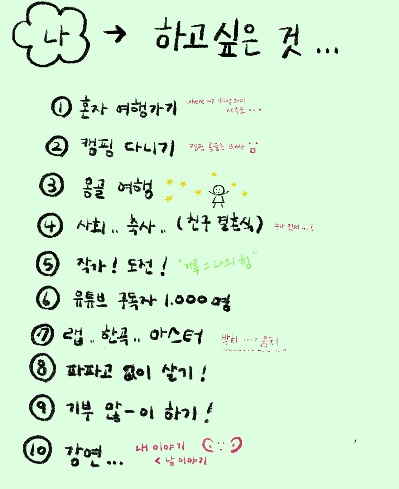 그 질문을 들은 날 하고 싶은 걸 노트에 적어봤다