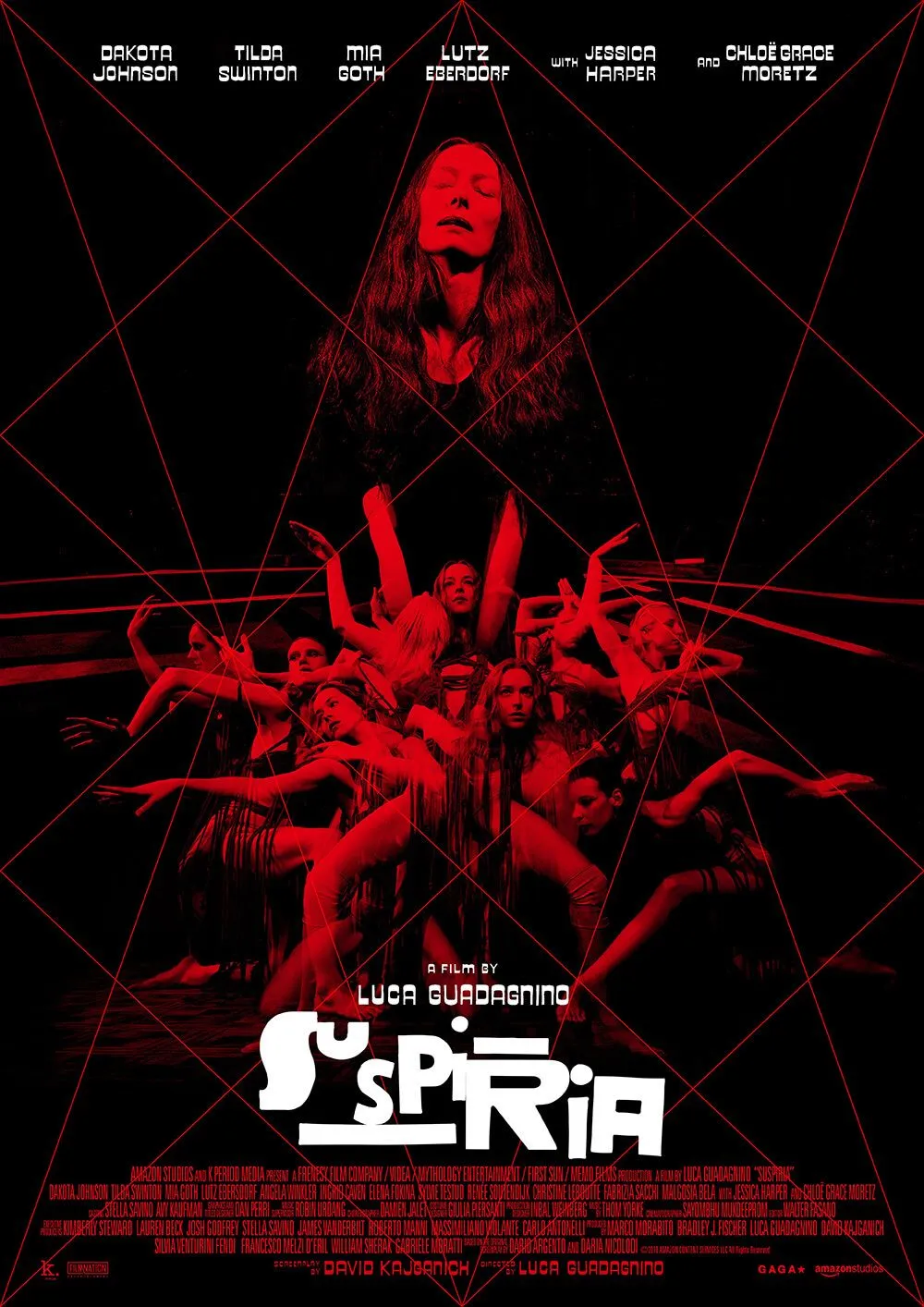 이 영화는 원작의 설정인 무용학원의 탈을 쓴 마녀들의 소굴과 독일의 근현대사 중 비극이라고 널리 알려진 홀로코스트와 동독과 서독으로 나뉜 단절의 이미지를 공유하는 시대에 존재한 바더 마인호프의 테러와 연관된 사회주의 타파 운동과 그로 인해 파생된 비행기 사고를 연계함으로써 드러나는 과거와 현실의 관계성은 비단 극 중 인물들과 말을 전하려는 외연적인 존재 간에서만 형성되는 것이 아닌 본질적인 매개체로서 영화 대 영화로서 과거와 현실의 변화한 시대상을 동시적으로 향유하여 그 이음새를 만들어내어 단절된 독단성이 아닌 비단절적 계승으로서 그 의미를 더하고 있습니다. 즉 현실 속 인물들이 남긴 발자취에 대한 경의이자, 영화 간의 존경심을 묘출하는 오마주적 태도 역시 견주 하고 있습니다. 동시에 영화로서 사회라는 확장적 범위를 축소시켜 대비를 이용한 유사성을 토대로 사회를 가상으로 외연 시켜 압축화하는 형식으로 사건의 병치로 시대를 말하는 전위적인 방법론을 채택하여 이질감이 들지만 동시에 어디에도 없는 영화를 기여코 만들어냅니다.