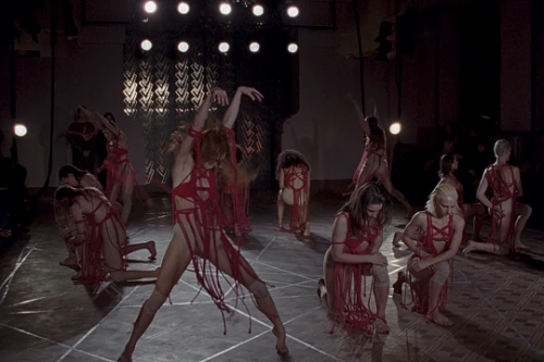 ​아무래도 원작의 리메이크작이다 보니 전반적인 전개 방식이 거의 유사합니다. 그러다 보니 자연스럽게 연출적인 부분에 집중할 수밖에 없는데, 이 영화의 연출적인 면은 루카 구아다니노가 구현할 수 있는 무용이라는 인간의 육체를 이용하여 마치 마리오네트처럼 마녀들이라는 비가시적인 억압의 속성을 지니고 있는 사회적 시스템에 조종당하며 온갖 잠재성을 짓밟힌 채 그저 그들의 시스템 유지를 위한(무용학원의 전통적인 대를 계속 잇기 위한) 추상적인 사상을 분출하는 이미지로 굉장히 그로테스크한 시퀀스를 형성하고 테러의 시대에 당착한 패트리샤의 오염과 자아의 죽음에 발목을 잡혀 결국 억압과 조종에 잠식되는 장면을 인서트 샷으로 영화를 진행시키고 그 뒤로 소굴을 견고하게 이어온 육체로서 가시적으로 전이된 세월의 흐름을 지닌 휠러라는 인물과 그 시스템 위에 꼭대기로 향하려는 마담 블랑과 이를 경계하는 마르코스파가 진행하는 의식 장면은 선형적 유사성을 자아내어 무용과 마녀의식의 심상을 동일시하여 무용학원이라는 작은 사회 안에 시민처럼 존재하는 학생들을 부품의 일부처럼 다루며 그들을 제물로서 망령들을 이곳에 가두어 젊은 인간의, 특히 생명 순환의 시발점을 만드는 존재인 여성의 혼으로 생기를 불어넣으려는 환원적인 태도를 기반으로 의식을 거행합니다.