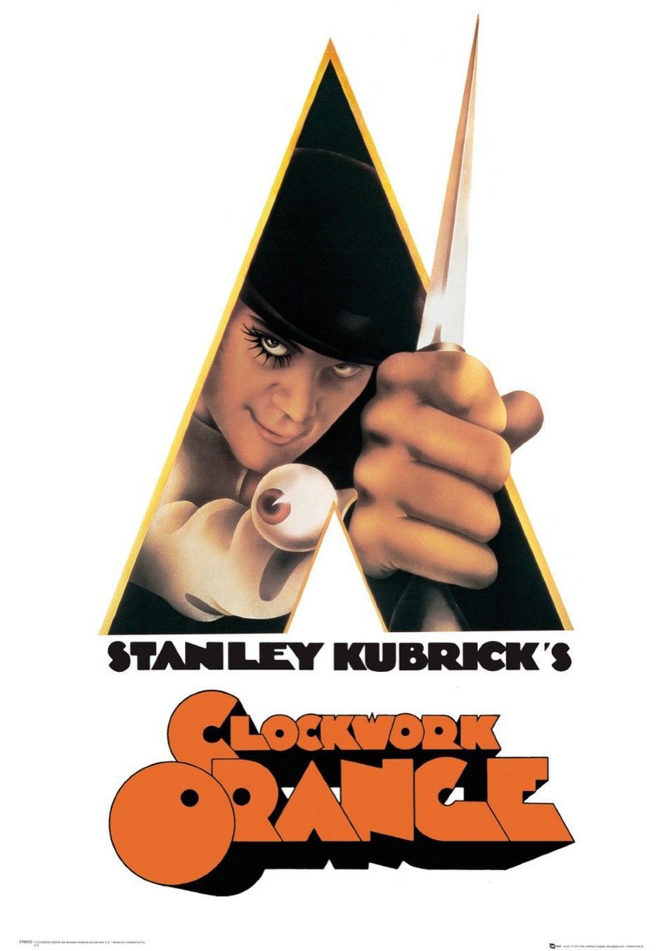 시계태엽 오렌지 역시 인간 심연의 본성적 자아인 성적 욕구에 대해서 다루는 디스토피아 배경의 영화인데, 여기서도 주인공이 인상을 찌푸린 채 안면이 클로즈업된 주인공의 얼굴에서 점점 줌 아웃을 함으로써 관객들에게 직관에 기반하여 시각적인 불쾌감을 자아내고, 그의 주변을 이루는 미장센에서 보이듯이 온갖 터부시 되는 성적 욕망을 노골적으로 표상화하는 동상들이 양 옆에 균형적으로 존재하여 180도 법칙과 황금비율을 의미하는 3등분의 법칙을 제공하여 욕망을 절제하지 못하고 불온한 방식으로, 상당히 미성숙한 방식으로 그대로 성적 욕망이나 폭력적 성향을 표출하는 인물들과 그에 모순되는 아주 정교하고 계산적인 기하학적 배경 설계로 본능과 이성의 대결에서 이성이 패배한 세계를 적확하게 묘사합니다. 이처럼 카메라 구도와 더불어서 배경을 통해서 신비로움과 원초성을 강조하는 회피하고 싶은 '추'의 미학을 융합시켜 부조화 속 조화를 이끌어내어 독특한 이야기를 만드는 데 있어서 탁월한 감독입니다. 이런 이유로 우리가 알던 세계에서 특정 상태로 변화하게 된 구체적인 이유를 관객에게 제시하는 것보다는 애초에 감독이 구현하기를 원하는 세계를 먼저 만들어 놓고 이를 덧붙이는 식으로 해명을 하며 모든 존재는 인간이 듣지 않았던 내면에서부터 우리가 인지하는 세계가 시작된다는 실존은 본질에 앞선다는 실존주의적인 성격을 띠는 철학으로 새로운 세계로 인도합니다.
