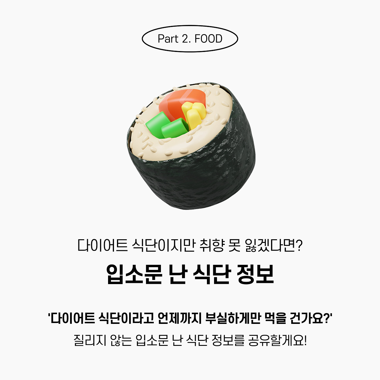 식단 중에 억압된 우리의 욕망과 취향을 어루만질 수 있는 다이어트 레시피를 소개한다.