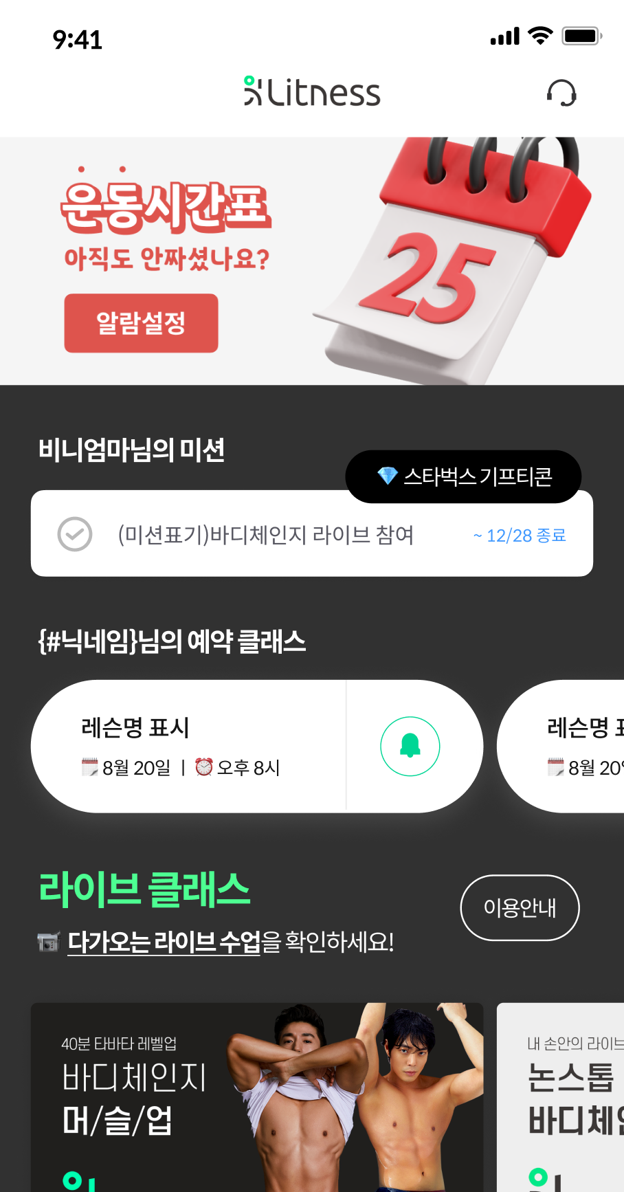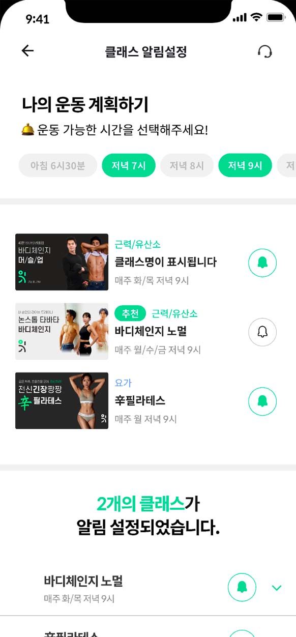 우리가 유저에게 '클래스 예약'이라는 경험을 유도하는 방법은 크게 두 가지가 있었다. 하나는 각각의 클래스 상세 화면에서 예약하는 방법이고 다른 하나는 마이페이지에서 '클래스 알림 설정'을 하는 것이다. 하지만 두 가지 기능 모두 유저가 직접 찾아 나서야지만 찾을 수 있는 수동적인 위치에 숨겨져 있었다. 그래서 우리는 이 '클래스 예약'경험을 최초 로그인하는 유저에게 필수적으로 제공하기로 했다.