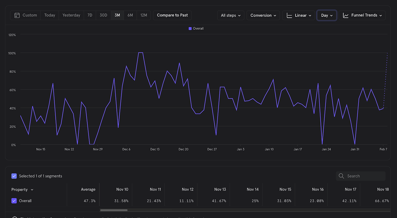 그중에서도 우리가 주목했던 것은 '클래스 예약'이었다. 어느 날 CTO께서 라이브 클래스를 참석한 유저들은 높은 확률도 '클래스 예약'을 선행한다는 사실을 알려주셨다. 다시 말해 유저들에게 '클래스 예약'을 선행시키면 라이브 클래스 참석률도 올라가지 않을까? 하는 가설을 세워볼 수 있었다.