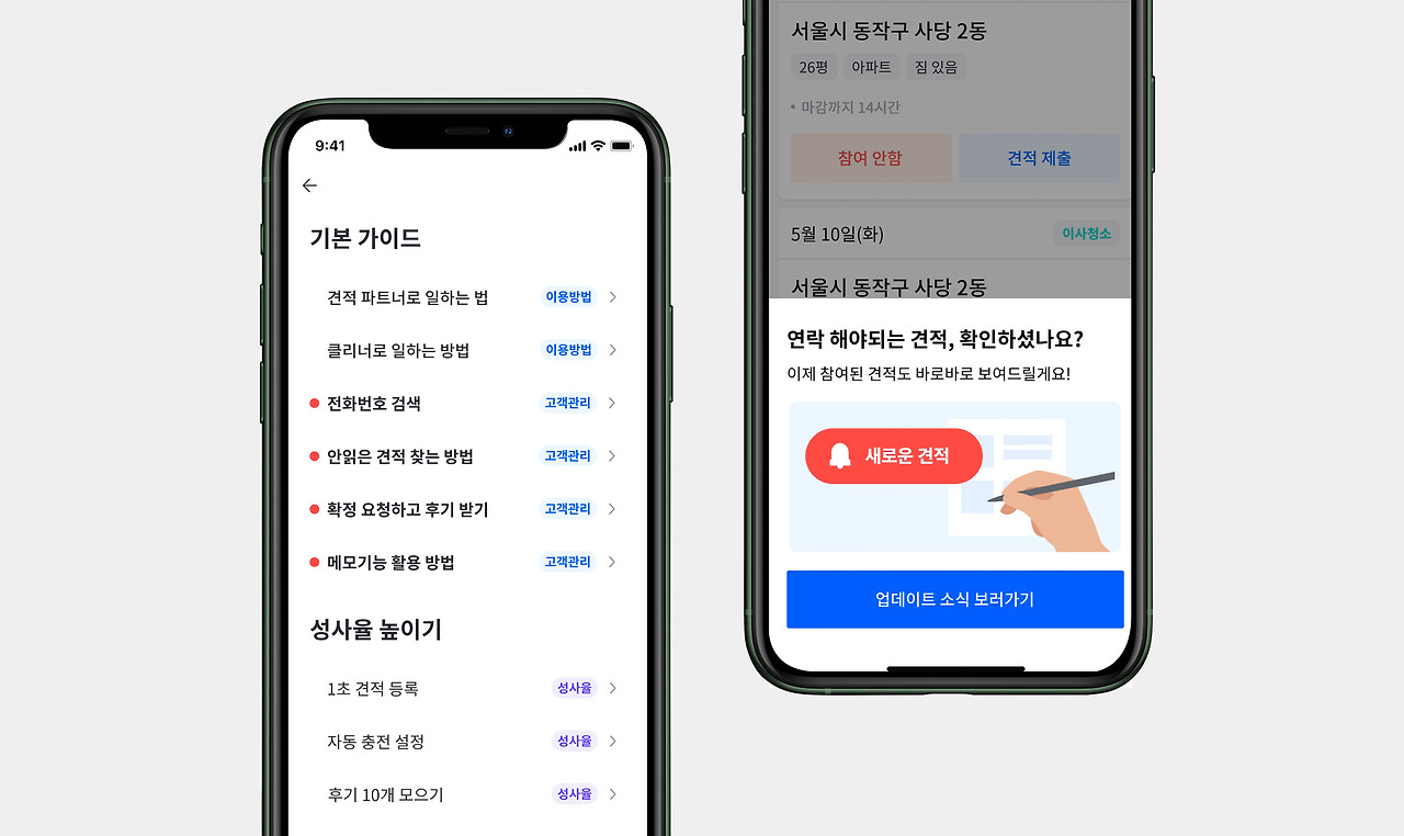 - 이사일이나 방문견적일 순서로 볼 수 있었으면 좋겠어요.