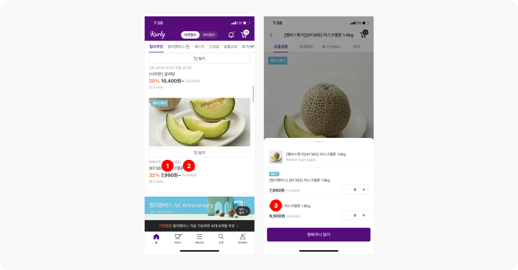 멤버십에 가입한 유저를 메인 타깃으로 설계된 UI라서 일까, 나는 종종 첫눈에 보이는 멤버스 가격에 혹해서 들어갔다가, 구매 직전에 표기된 상품 가격을 보고 뒷걸음질 쳐 나온 적이 왕왕 있었다. 그래도 주 1회 컬리 이용하고 있는데, 멤버스특가.. 메인 가격표처럼 붙어있는 너 좀 낯설다.