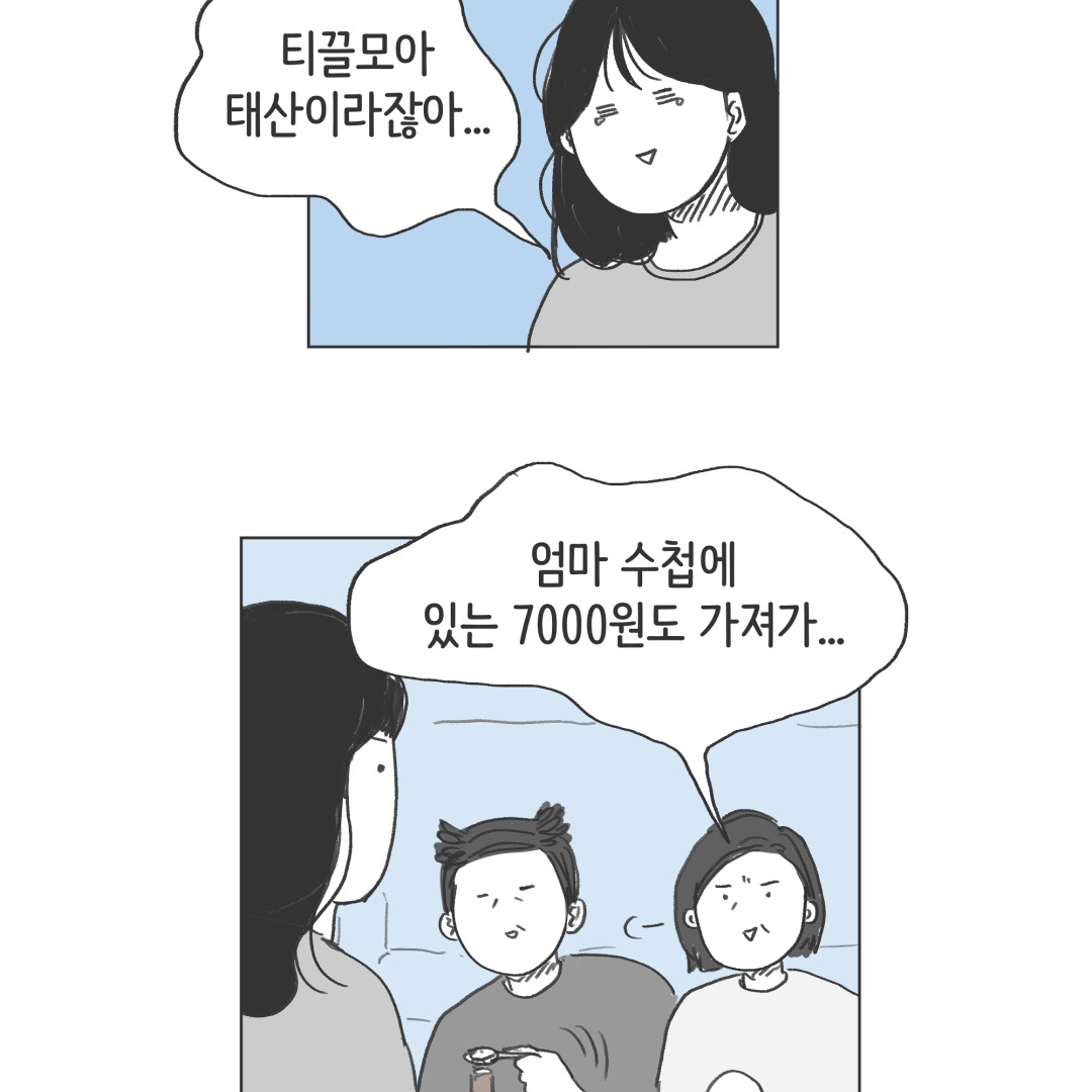 과연 제가 엄마의 7000원을 얻었을까요...? 뒷 이야기가 더 있는데요. 혹 전체 내용이 궁금하시다면 네이버 웹툰 앱 <백수와 갓족>, 또는 하단의 링크를 통해 보실 수 있어요. 재밌게 봐주세요!