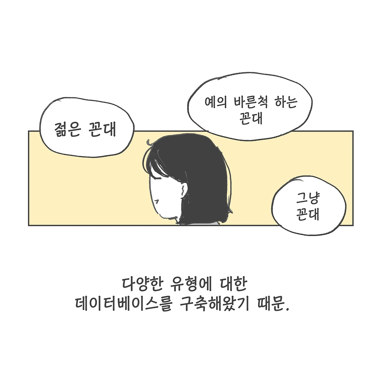 나란 인간이 꼰대에 대한 내구력이 유별나게 부족한 사람이었을지도 모르겠지만, 당시 집단의 꼰대력 역시 분명 유별했다. 그러나 그들 역시 그저 살아가느라, 살아내느라 그랬으리라고. 나의 관용과 자비를 베풀고 반면교사의 감사함 정도로 마무리하는 것이 내가 나를 지키는 방법이겠다....