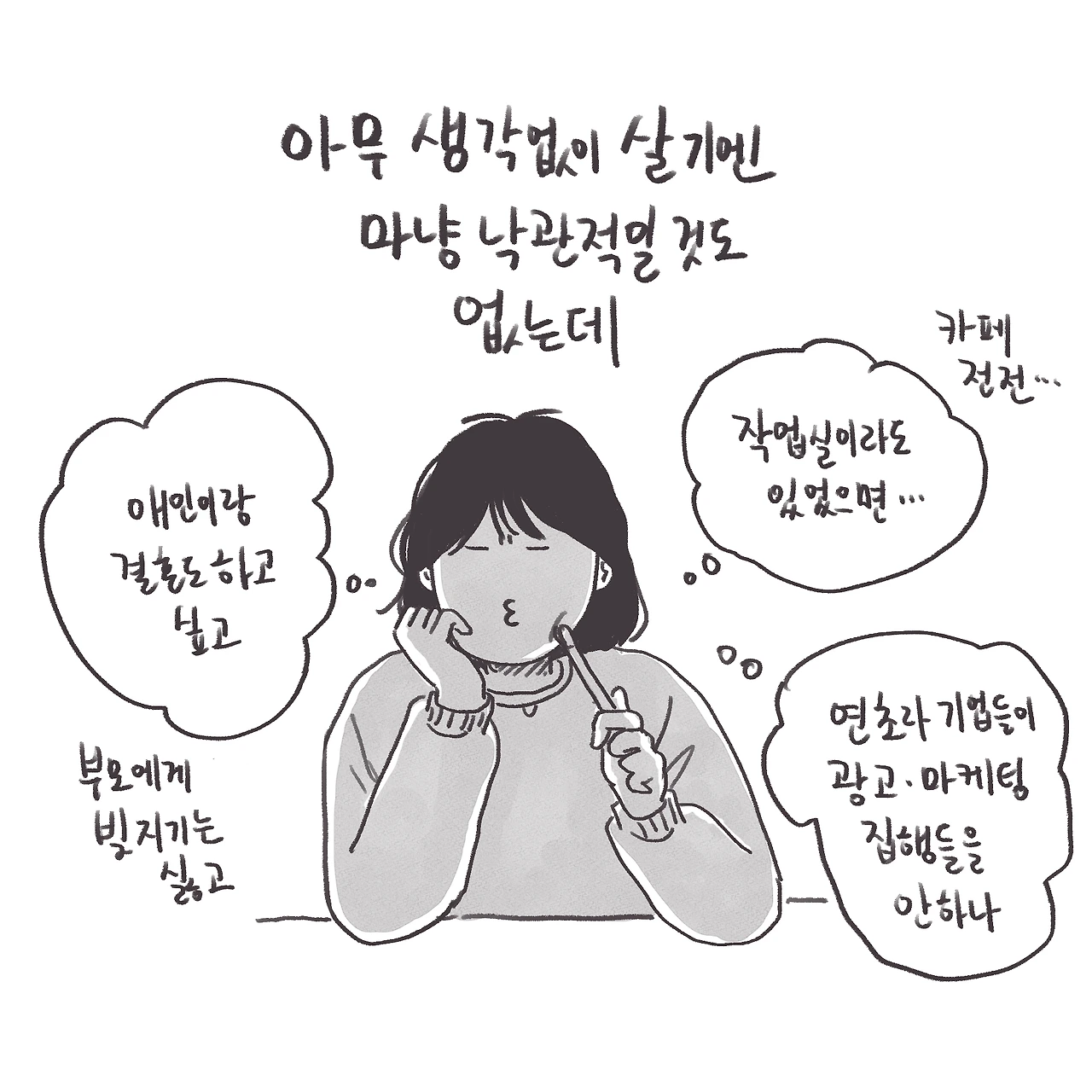 소심한 모험가, 웹툰작가지망생이었다가 다시 직장인, 중구난방 그림쟁이, TMI부자, 주접꾼엥푸삐