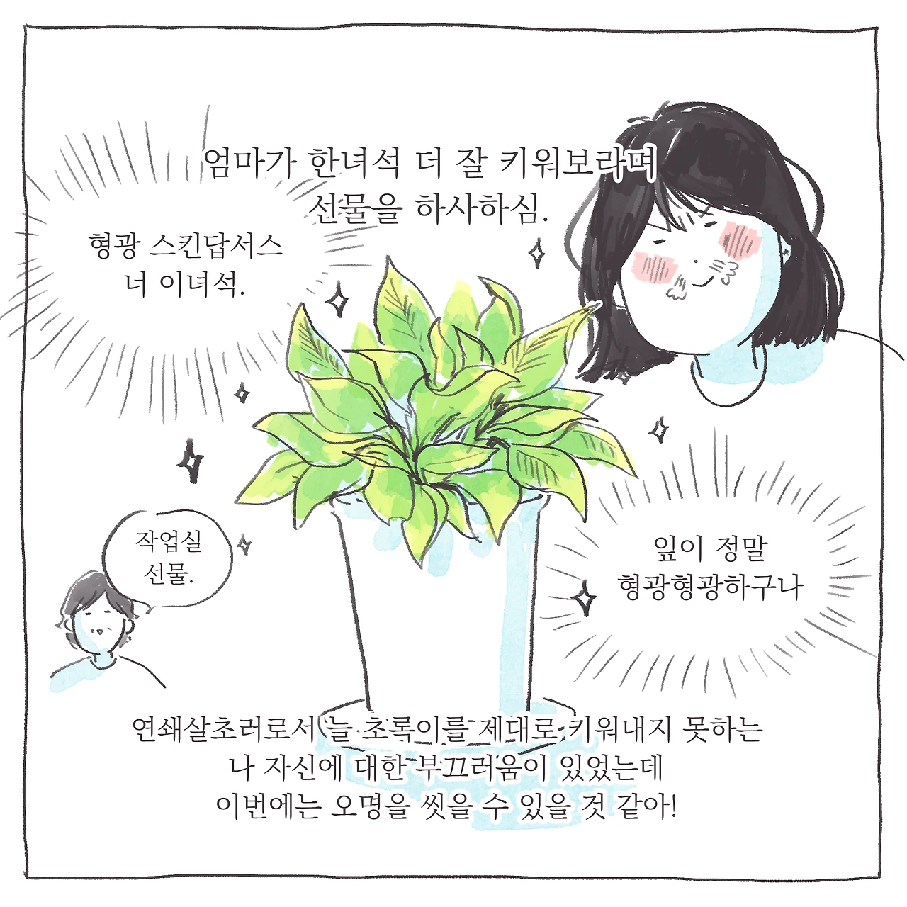 엄마의 하사품, 새 친구 형광 스킨답서스도