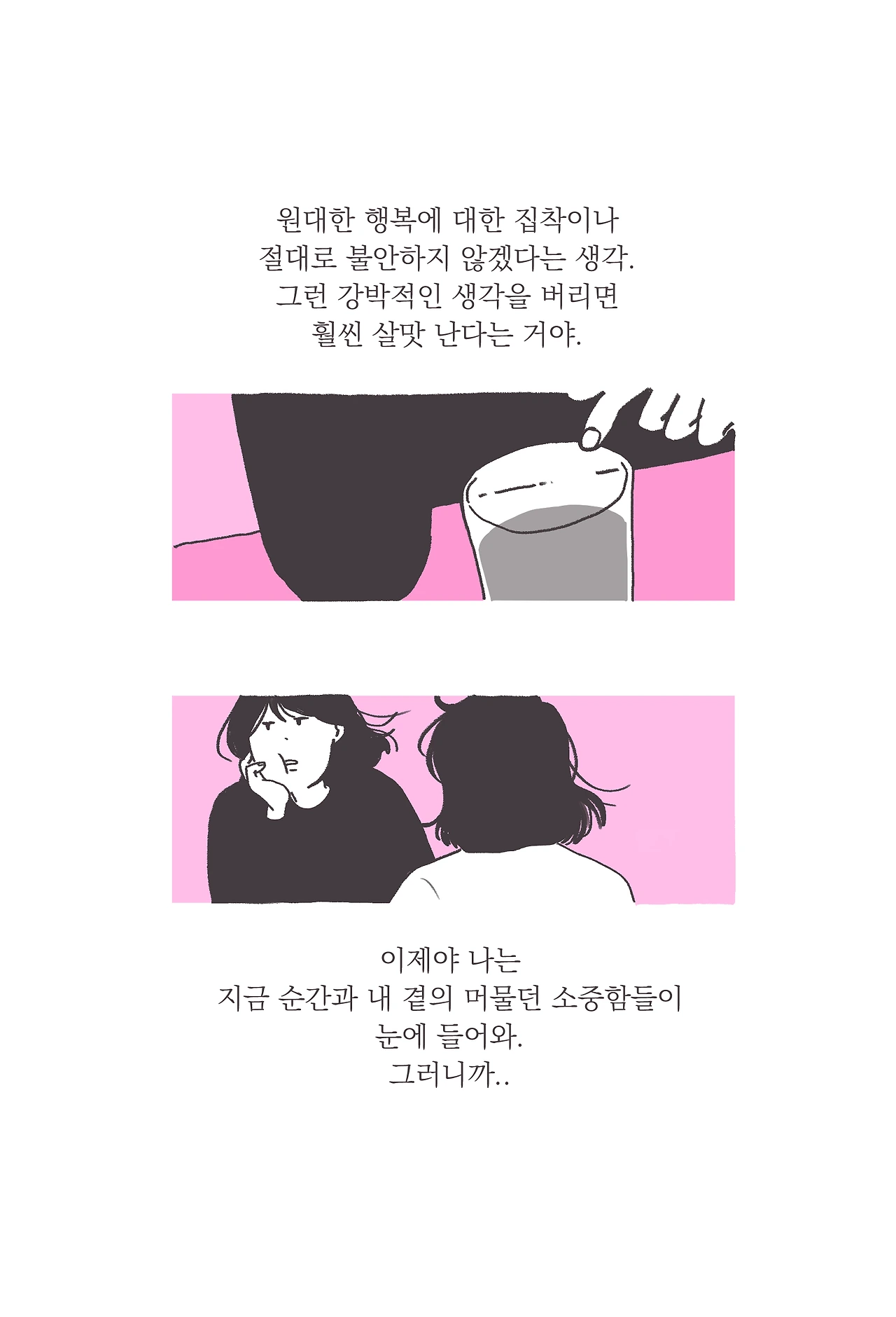 이 이야기는 어쩌면 무척이나 염세적인 사고회로일지도 모르겠지만, 결국 행복은 거창한게 아니라는 결론을 나누고 싶었다.