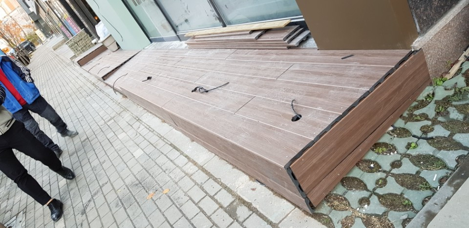 인천 1층상가에 미끄럼방지데크를 시공한 장면입니다.