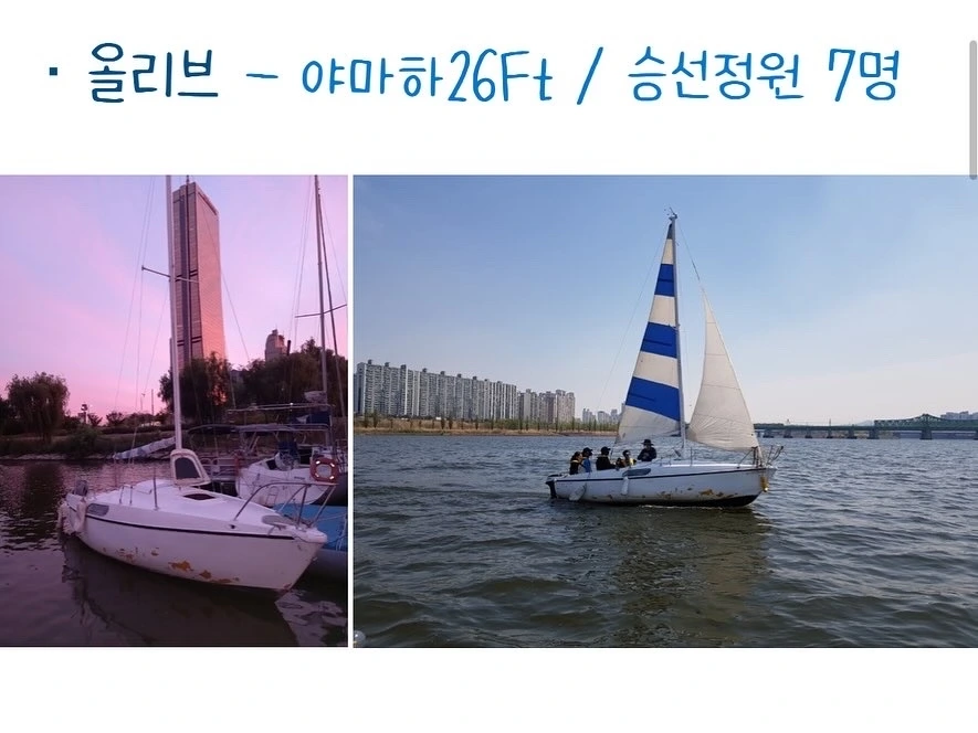 한강에 오면 많은 요트들 구경할 수 있어요.