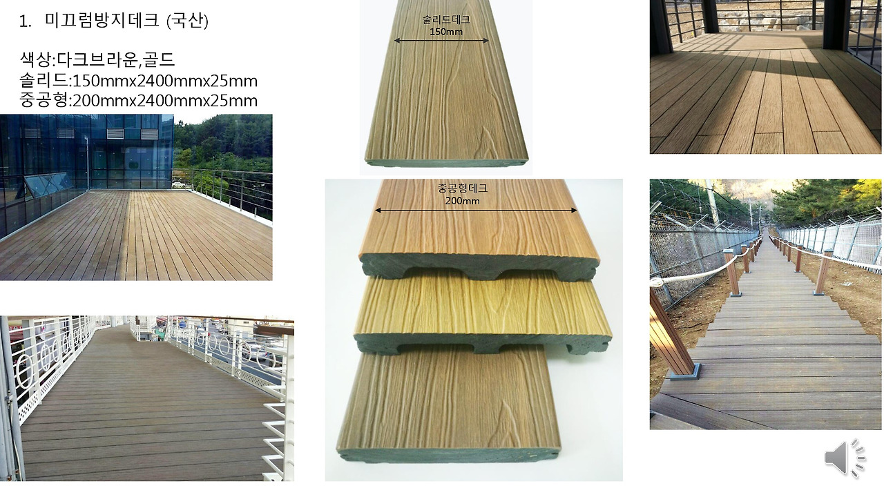 첫째, 미끄럼방지데크는 국내 특허받은 제품 중 앤틱데크를 신제품으로 출시했습니다.