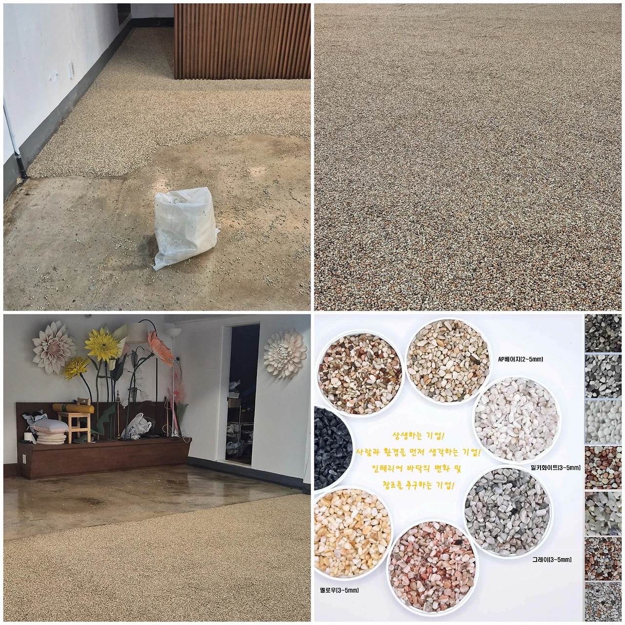 콩자갈은 기본적으로 자갈에 에폭시를 혼합해서 바닥에 도포후 디자인을 연출하는 방식입니다.