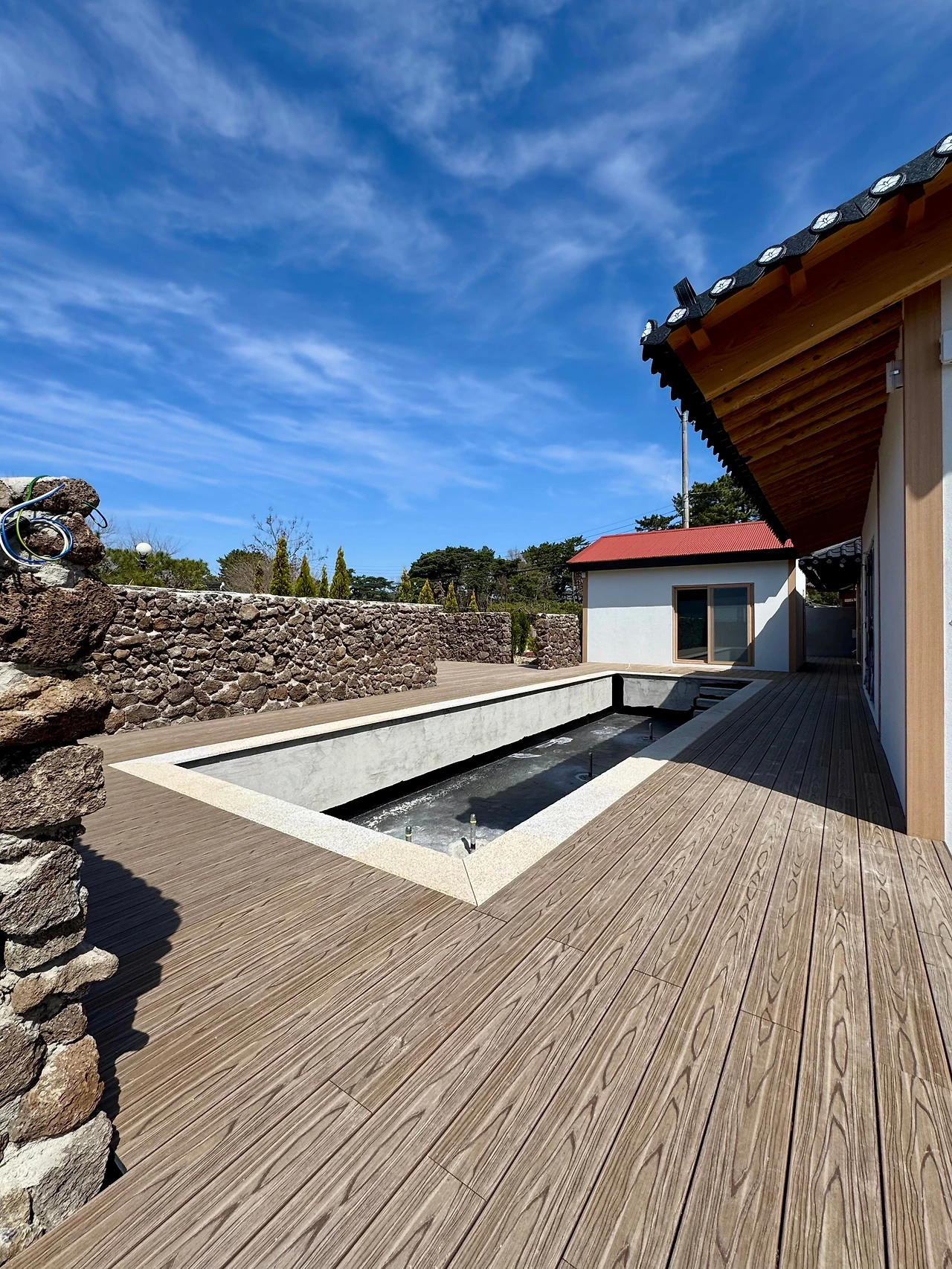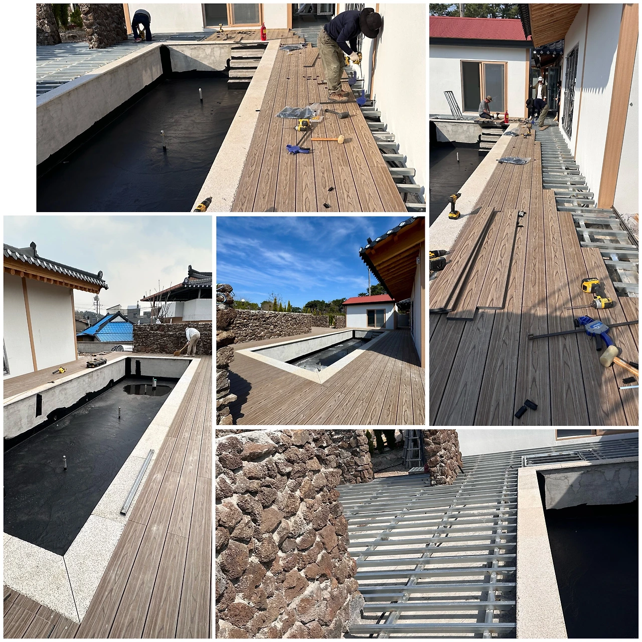 이곳은 경주 불국사 관광 오시는 분들이 많아서 숙박펜션같은 용도로 사용하며 중정같은 공간에 수영장을 만들다 보니 사람들의 보행을 위한 데크를 시공하게 되었습니다.