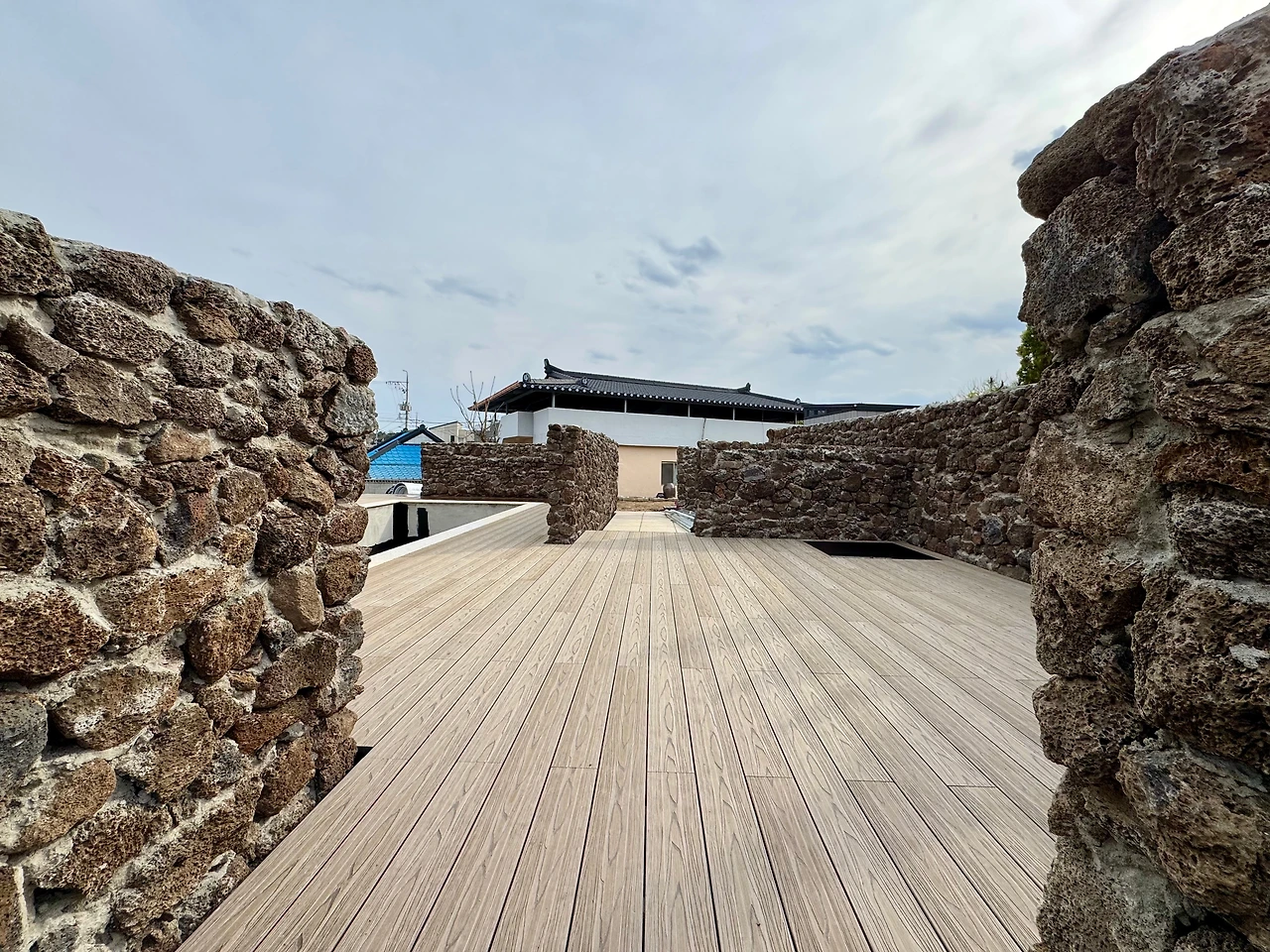 [유웰합성데크]경주 홈스테이에 시공된 논슬립 미네랄 합성데크