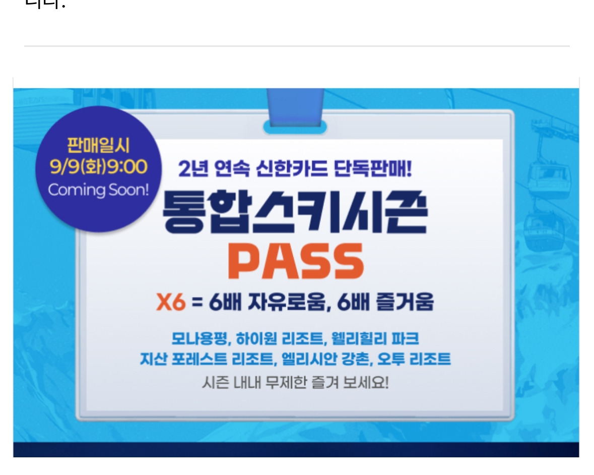 올해는 스키 시즌권이 x6으로 떴네요.