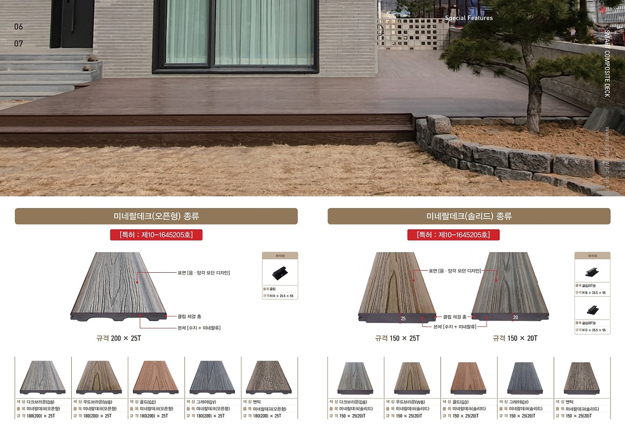 모든 건축자재들을 잘 살펴보면 특히 건축외장재 중 데크같이 보행이나 물리적으로 사용을 많이 하는 자재는 현장에 잘 맞는 자재를 선택하는 방법도 옳다고 봅니다.