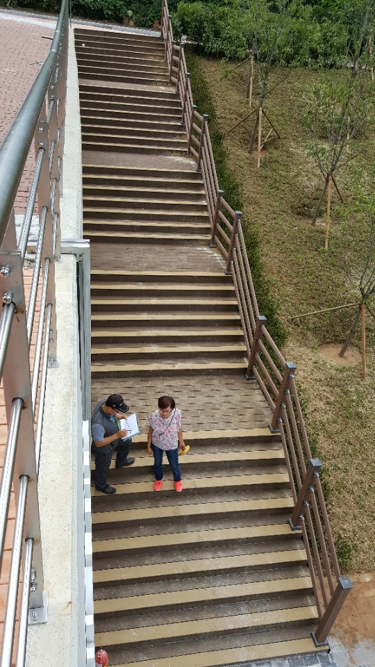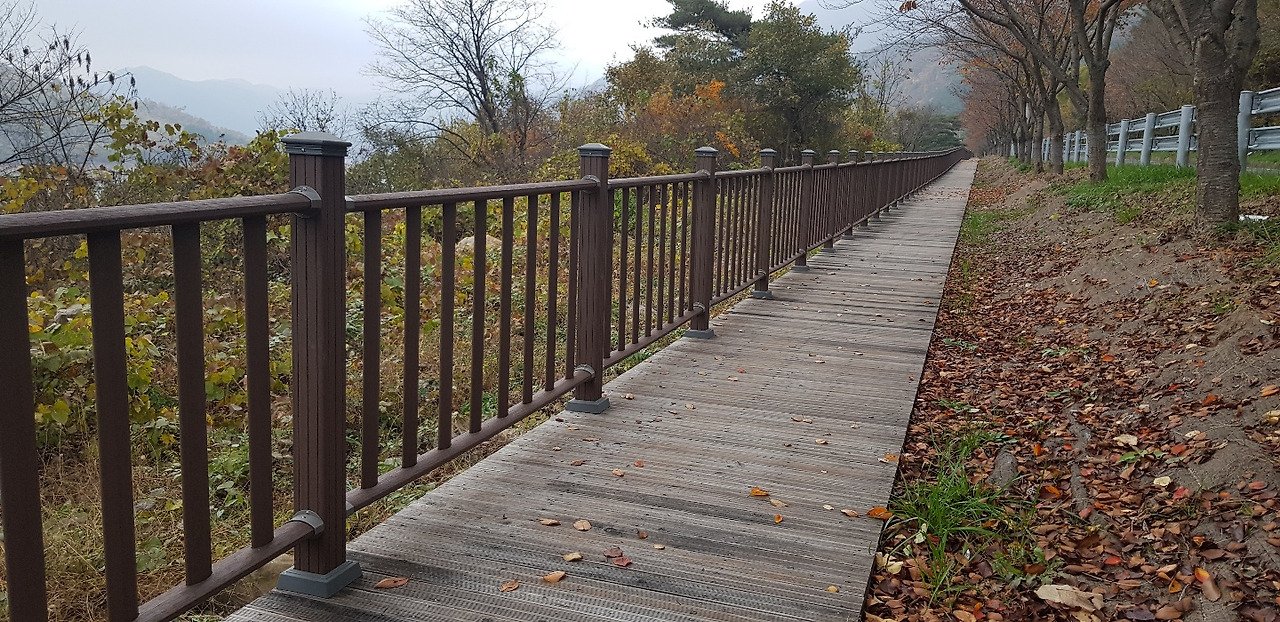 용문산 산책로에 시공된 논슬립 합성데크와 디자인 울타리