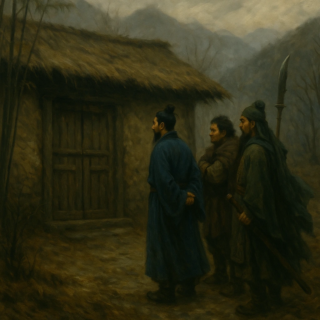 유비는 곧바로 제갈량의 초가집을 찾아갔습니다. 그러나 첫 번째 방문 때 제갈량은 집에 없었습니다. 두 번째 방문 때도 마찬가지였습니다. 주변 사람들은 “두 번이나 만나지 못했으니 포기하라”라고 했지만, 유비는 물러서지 않았습니다. 마침내 세 번째 방문, 제갈량이 낮잠을 자고 있는 집에 도착했습니다. 유비는 그가 깨어나기를 기다렸지만, 함께 간 장비는 화가 나서 불같이 성을 냈습니다. 그제야 제갈량은 유비를 맞이하러 나왔습니다. 유비는 공손히 인사를 올리고, 제갈량에게 세 번 절하며 자신의 뜻을 전했습니다. 제갈량은 그 진심에 감동해 유비를 돕기로 결심합니다.