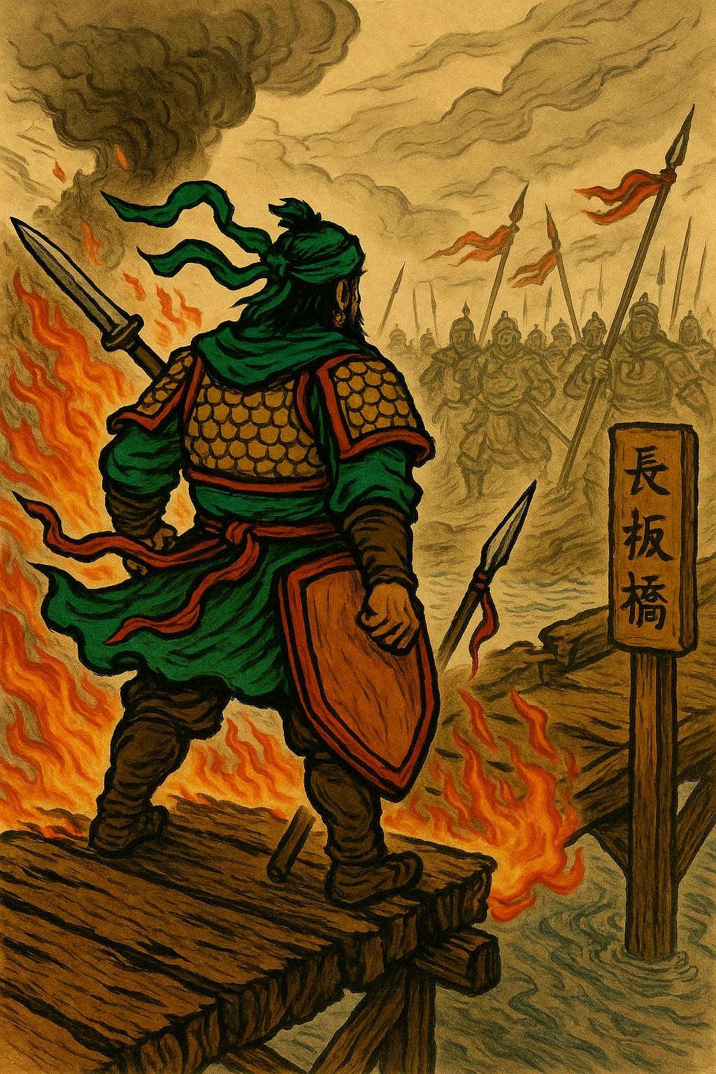 장비는 다리를 불태우고, 홀로 창을 들고 서서