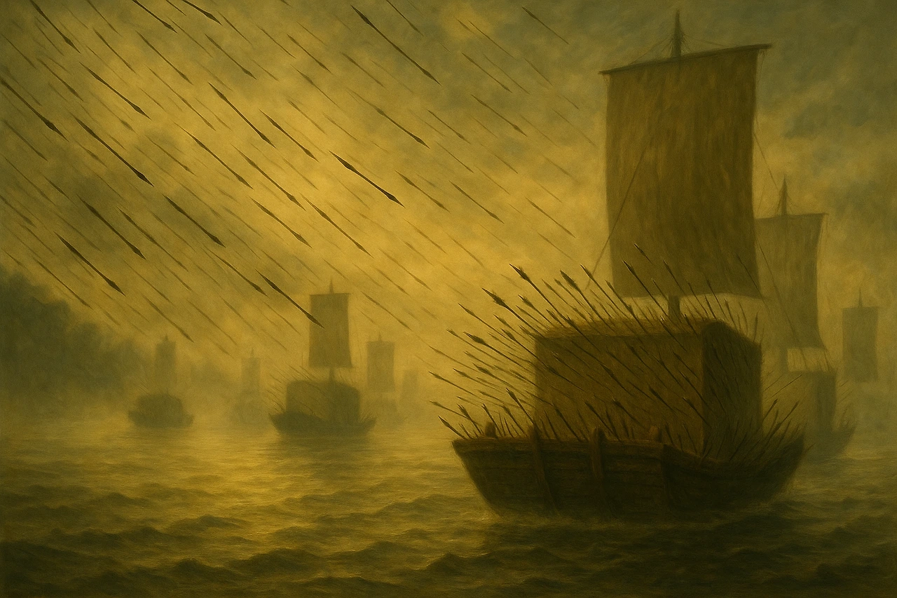 노숙은 불안에 떨었지만, 그는 조금도 흔들리지 않았죠. 마침내 사흘째 되는 날 새벽. 짙은 안개가 강 위를 뒤덮었습니다. 제갈량은 군사들을 이끌고 배를 띄워 북소리를 울리며 조조 진영 쪽으로 천천히 다가갔습니다. 안갯속에서 모습이 보이지 않자, 조조의 군사들은 허겁지겁 화살을 퍼부었습니다.