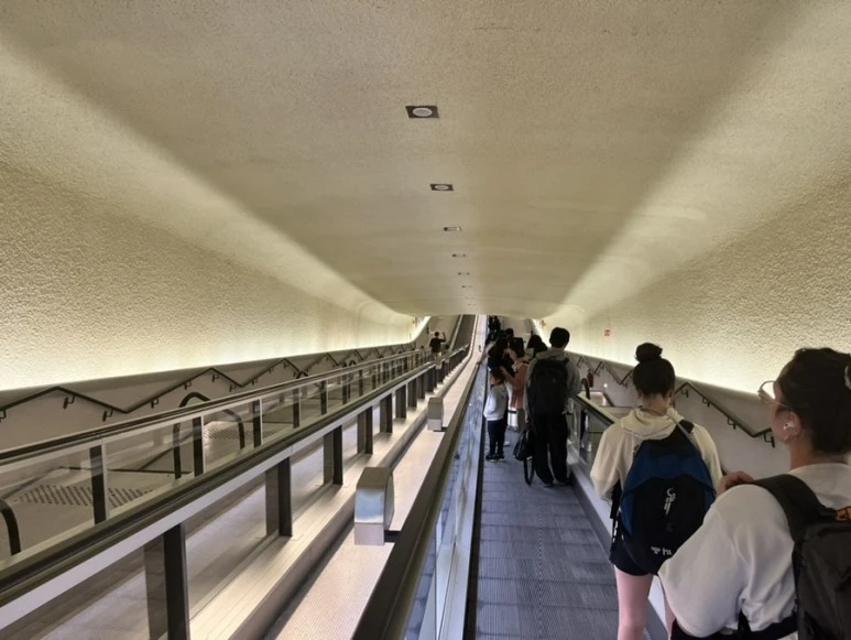 가운데 빈 부분을 가로지르는 여러 무빙워크는 놀이터 타이어 놀이처럼 푹푹 꺼지게 만들어졌다. 지하 어딘가에서 쉼 없이 움직이고 있는 캐리어가 된 기분이었다.