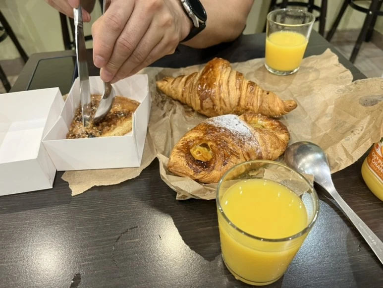 몽파르나스 역에 도착하니 온 세상 사람이 모인듯하다. 카페에서 아메리카노와 잠봉 뵈르 샌드위치를 하나 때렸다. 그런데 바게트가 질겨서 이가 좋지 않은 아빠는 영 신경 쓰이시나 보다. 조금 더 섬세하게 챙겨야겠다는 생각을 했다.