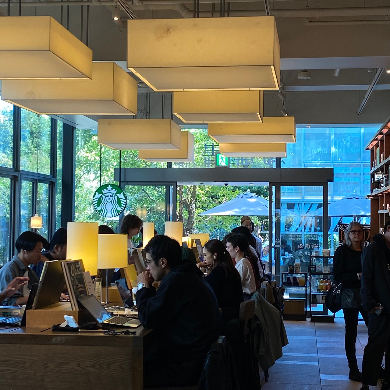 츠타야 서점 안 1층에는 스타벅스가 있습니다. 그리고 스타벅스에는 재택근무를 하는 사람들로 넘쳐납니다.