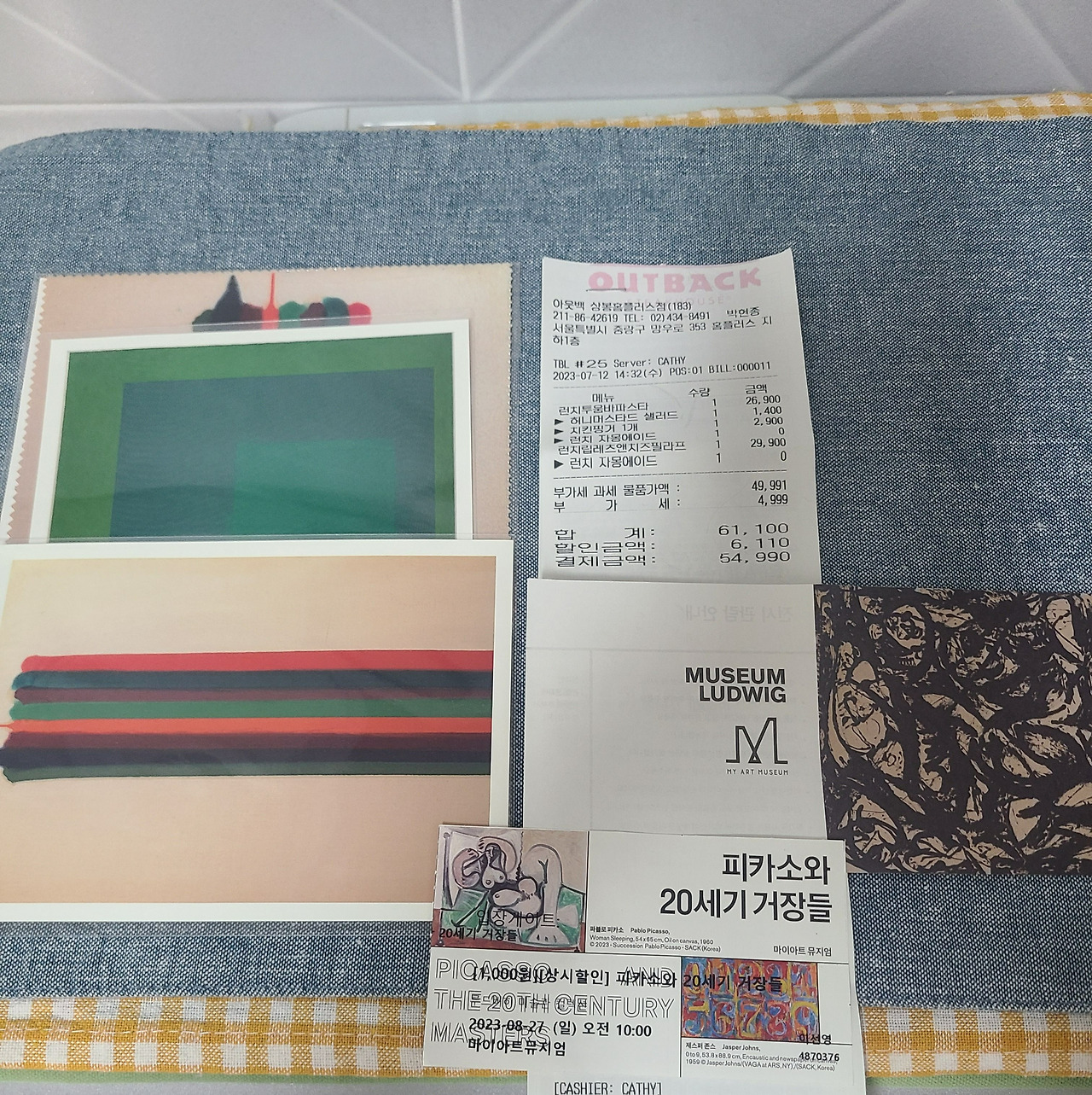 지난주 정신없이 일주일을 보내고 생일에 대한 계획이 따로 없었는데, 작년에는 투썸에서 조각케이크 사 먹고 아웃백에서 점심 배달해서 김치카카두 그릴러 세트류와 와인 한잔 사이즈 주문해서 먹었다. 올해는 어떻게 할까 전날 생각을 하다 오전에 이번달 계획한 삼성역 피카소전을 둘러보고 아웃백에 런치세트시간에 맞춰 네이버에 1인예약 플랜을 짠다.