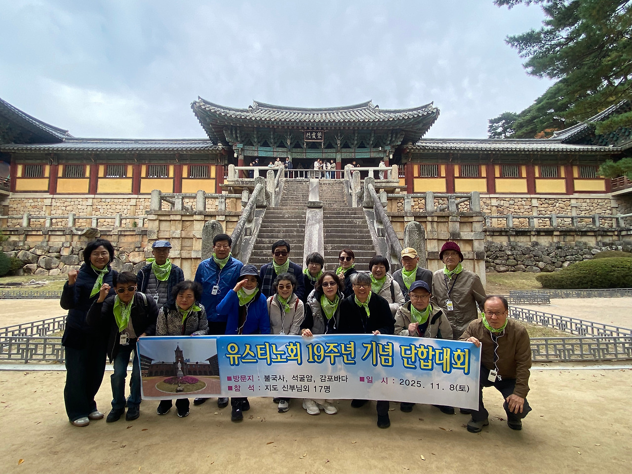 DCU 유스티노회 동문들은 11월 8일 경주로 가서 불국사와 석굴암을 견학하고, 감포항에서 오찬을 나눈 뒤, 바닷가 카페와 해변에서 오후 시간을 여유롭게 즐길 수 있었다. 여정은 이동과 휴식, 사색과 대화가 균형을 이루도록 구성되었고, 구간마다 서로를 배려하는 태도가 자연스레 떠올랐다. 돌이 세운 질서와 파도가 만든 리듬이 하루의 악보가 되었고, 우리는 그 사이에서 마음의 속도를 조정하며 여유를 가졌다. 잠시나마 어린 시절의 밝은 표정이 되돌아온, 고요하고 따뜻한 시간이었다.