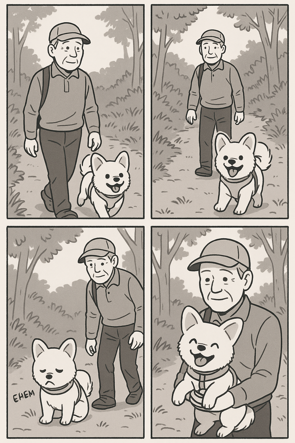 매일 아침, 나는 사랑이와 함께 웅산을 오릅니다. 가끔은 아내와 셋이 함께 걷기도 하지요. 사랑이는 언제나 나보다 반 발짝 앞서가다가도 자주 뒤돌아봅니다. 내가 잘 따라오고 있는지, 놓치지 않으려는 듯 살피는 그 모습이 얼마나 다정한지 모릅니다. 요즘은 나이가 들어서인지 금세 지쳐 자리에 앉아버릴 때가 많습니다. 그럴 땐 말없이 사랑이를 안고 천천히 걸음을 이어갑니다. 품 안의 온기, 함께 나누는 숨결 속에서 우리는 말없이도 깊은 마음을 주고받습니다.